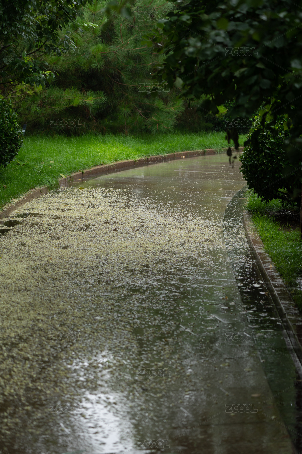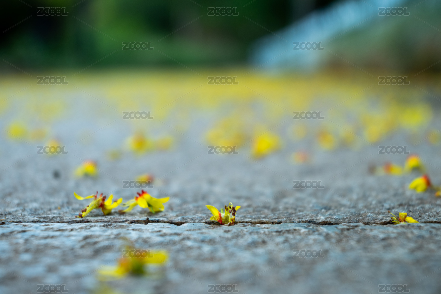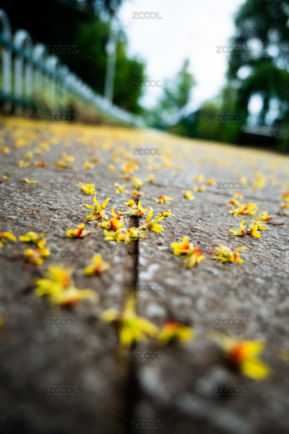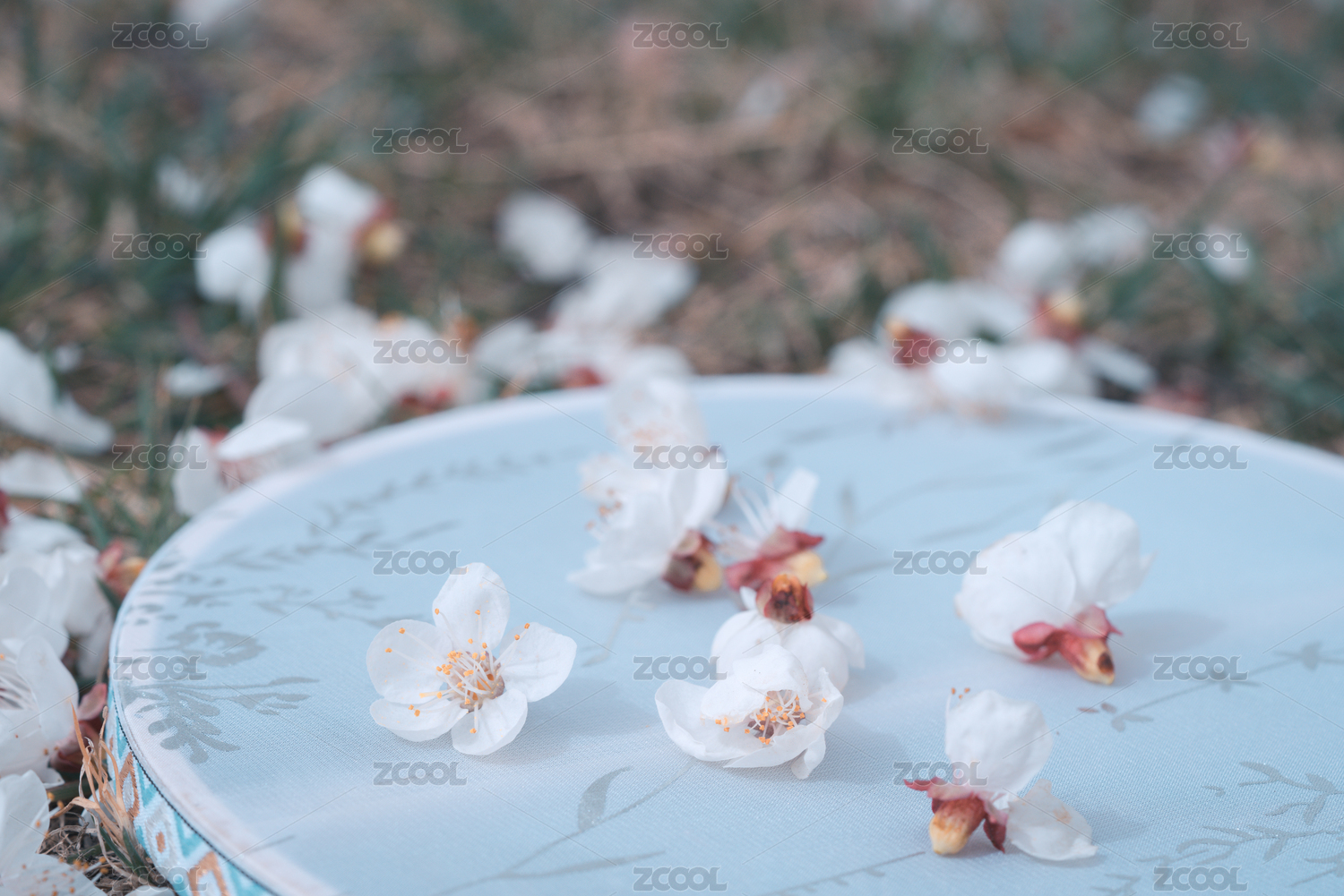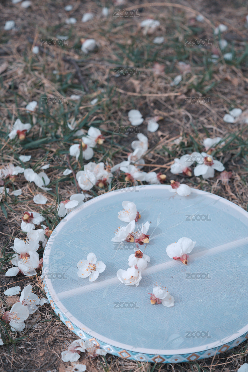 洁白的大雪映衬着的玫红色鲜艳落花花瓣