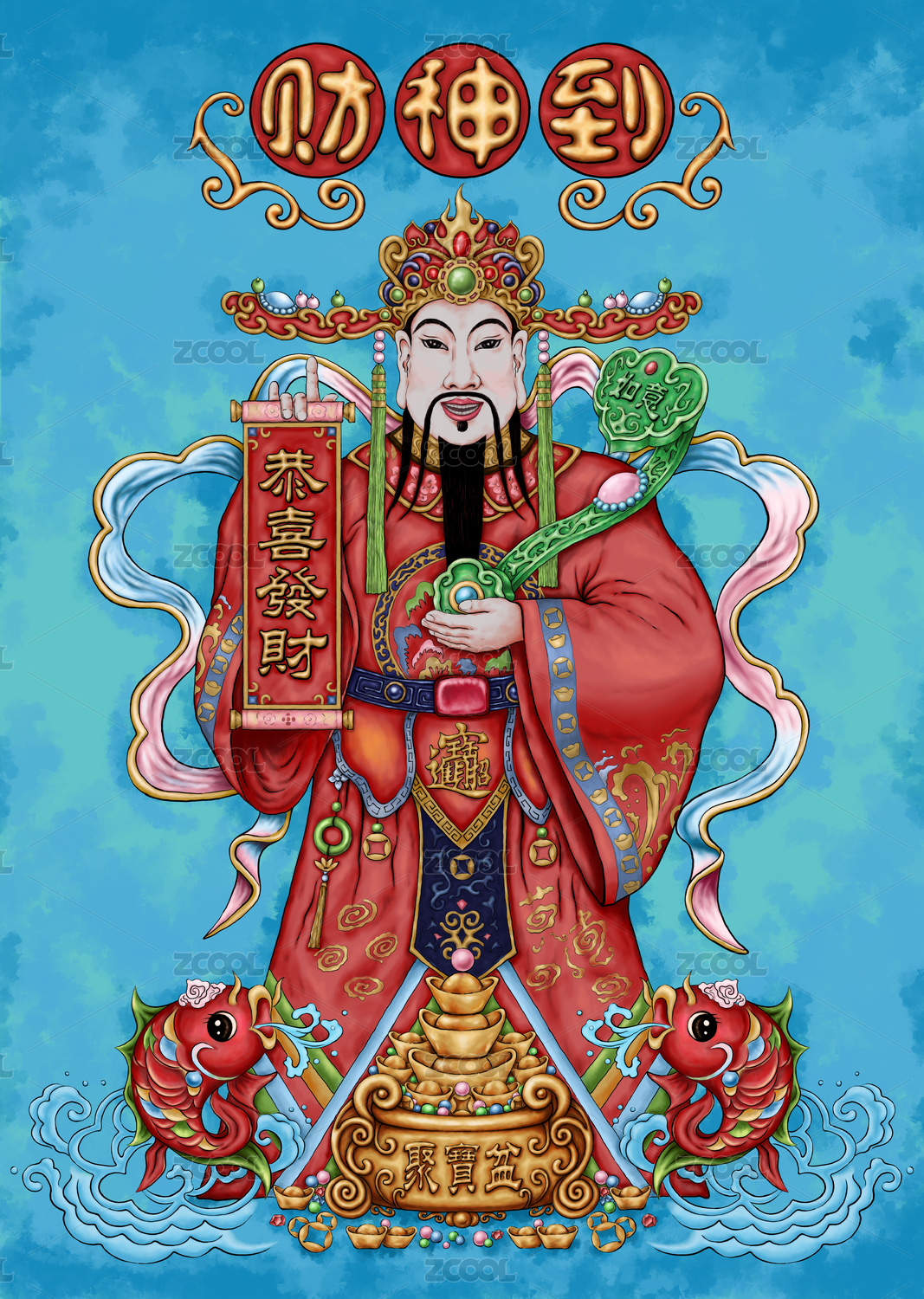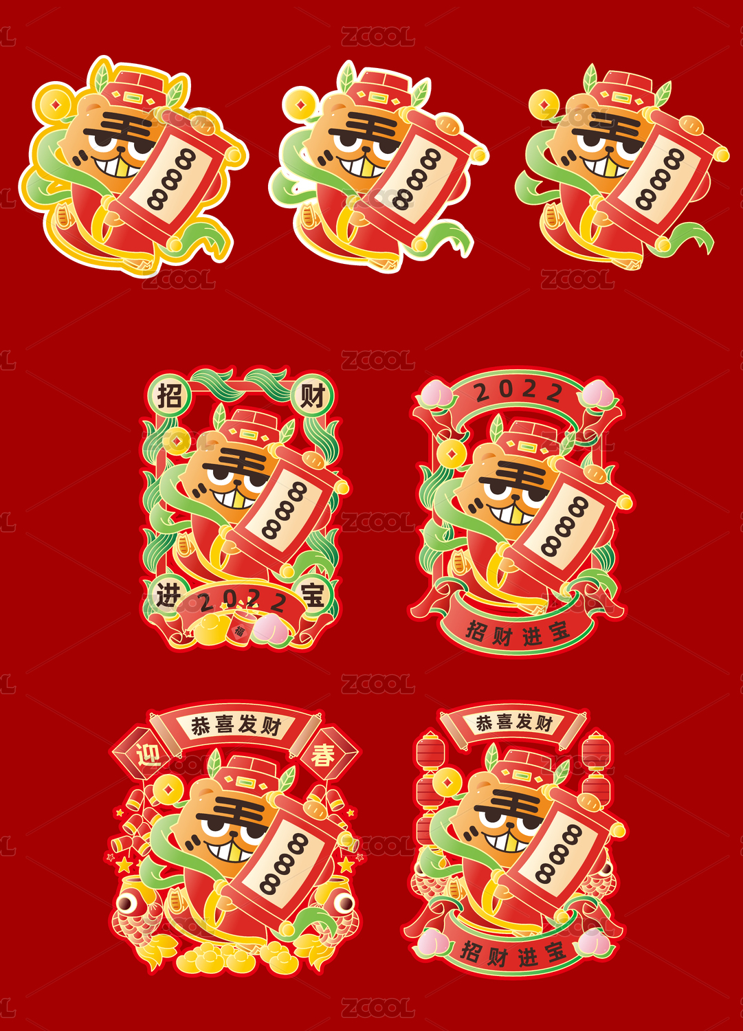 灯笼铜钱莲花祥云富贵福寿吉祥纹样国潮插画