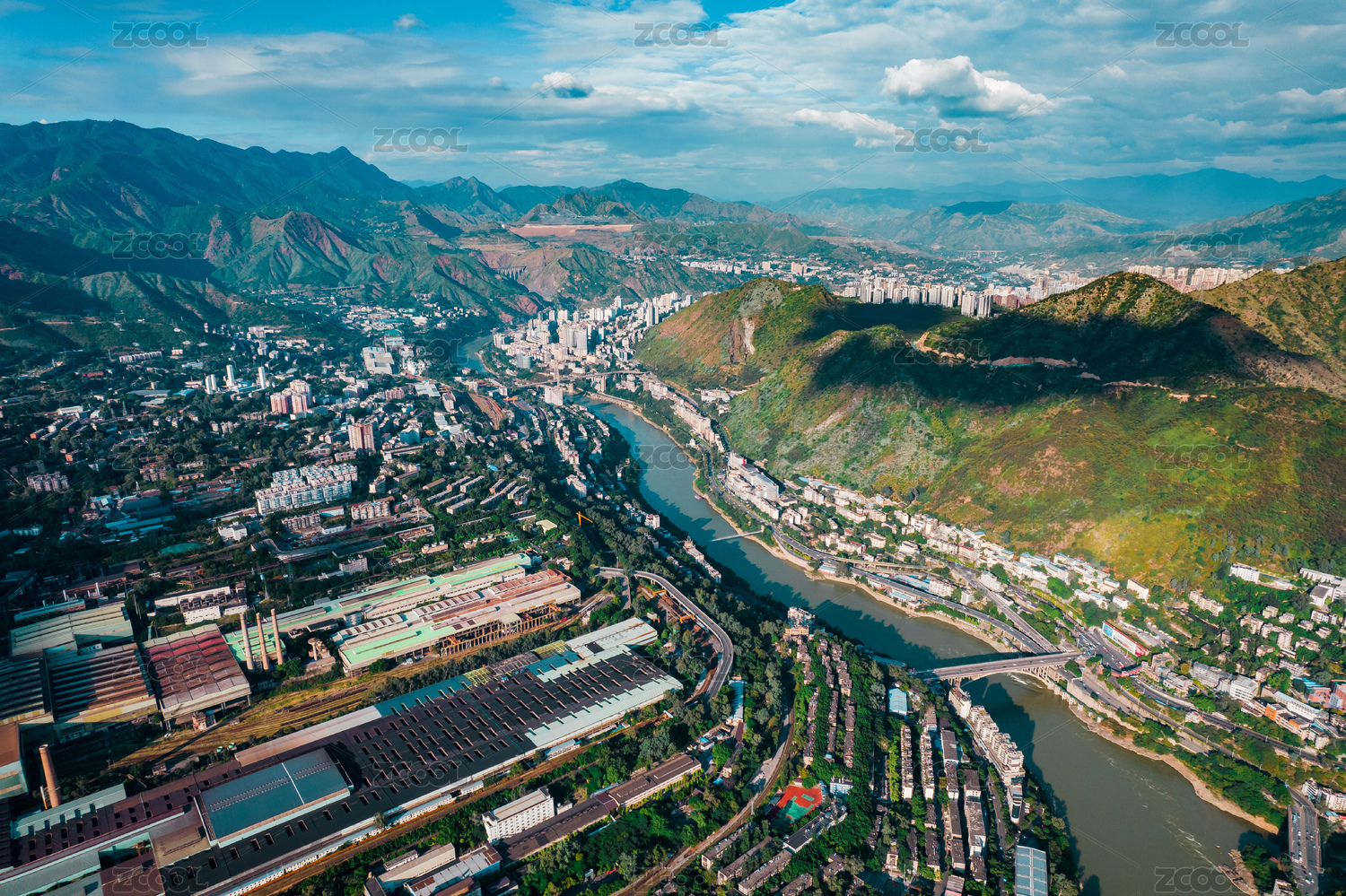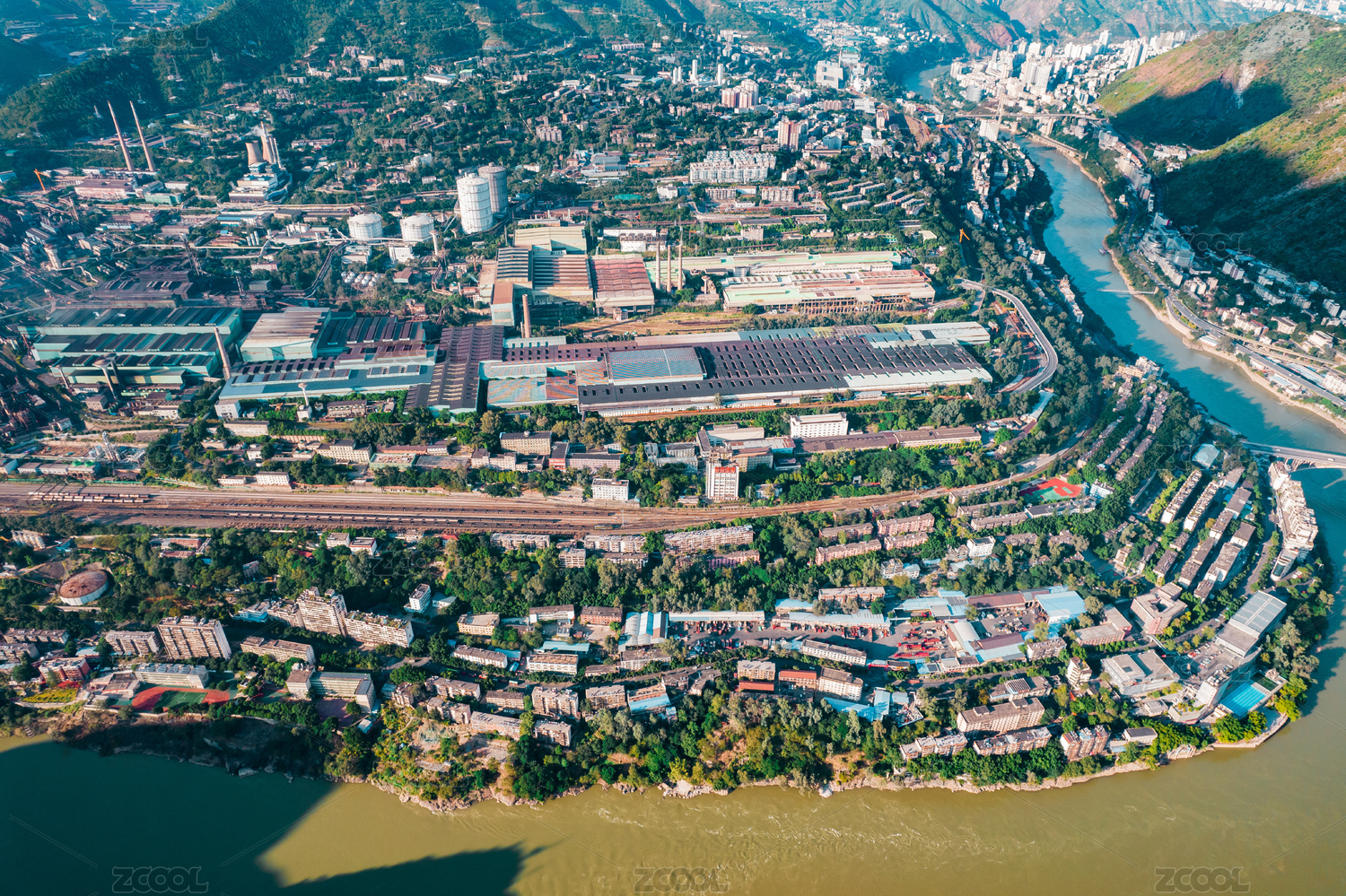 中国四川攀枝花钢铁工业区航拍