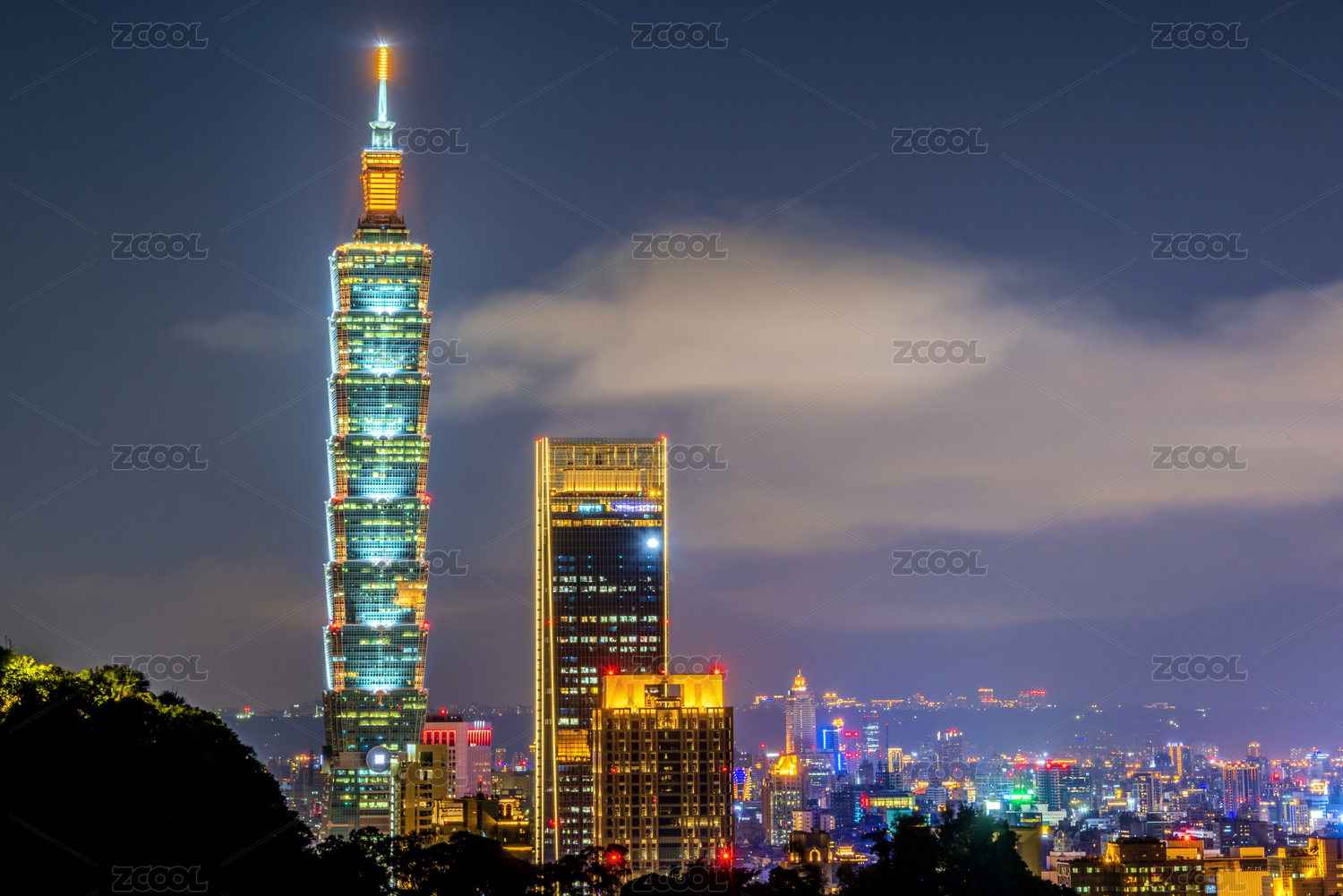 中国台湾台北虎山101城市夜景