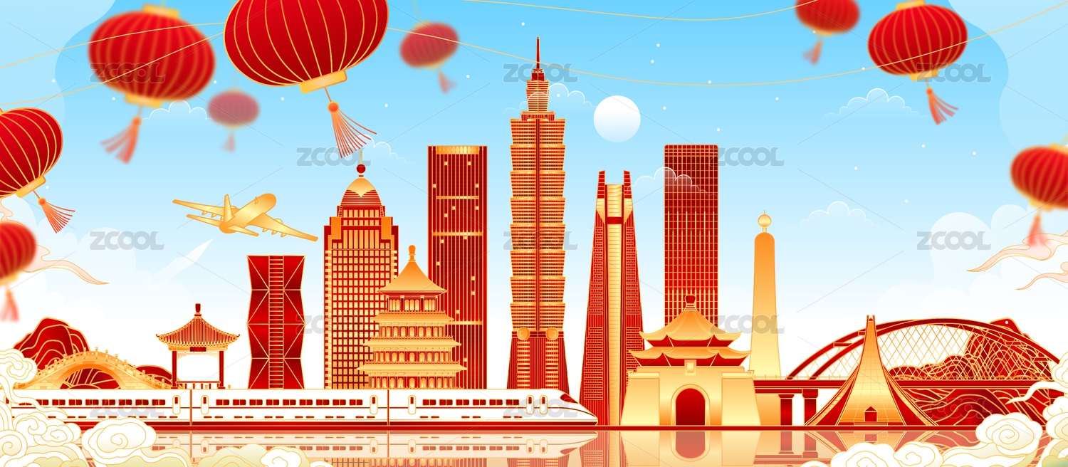中国台湾地标建筑群矢量节日插画