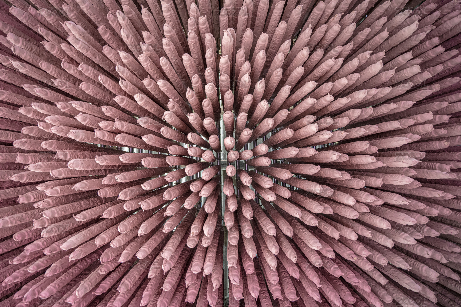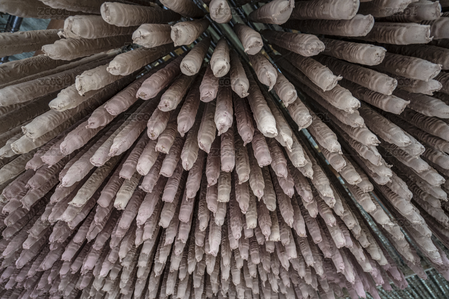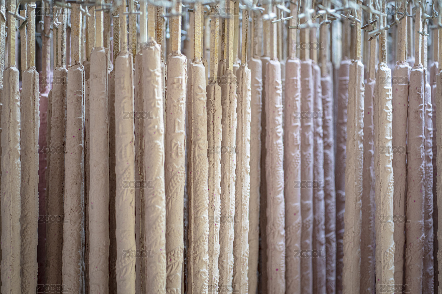 仰拍工厂里悬挂着的的供香半成品