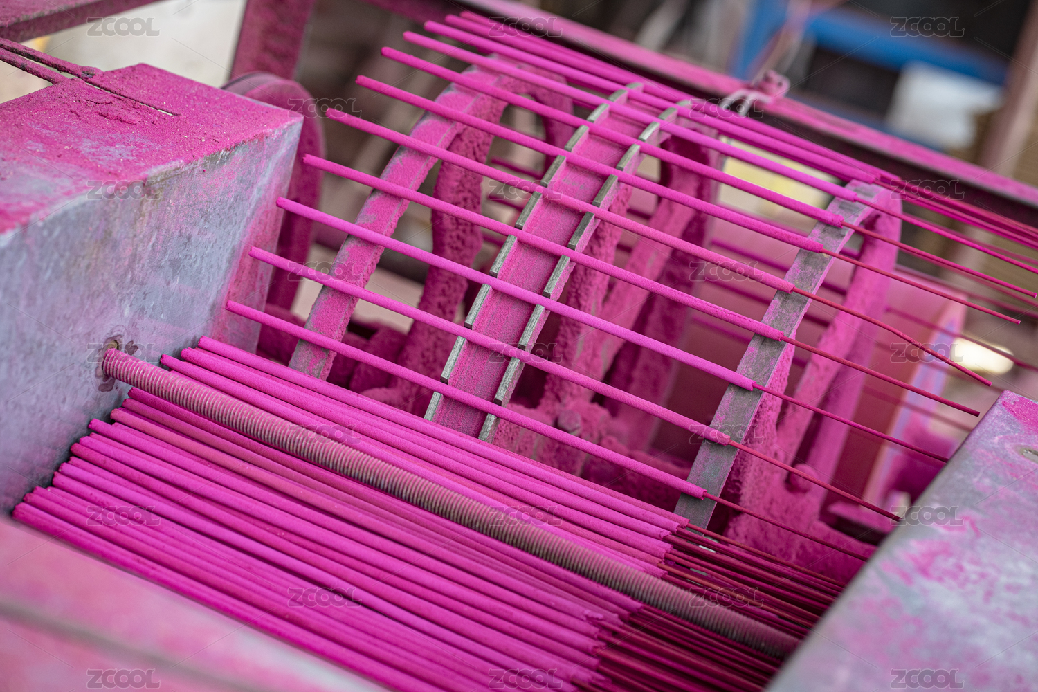 工厂里堆放的大根红色的供香成品