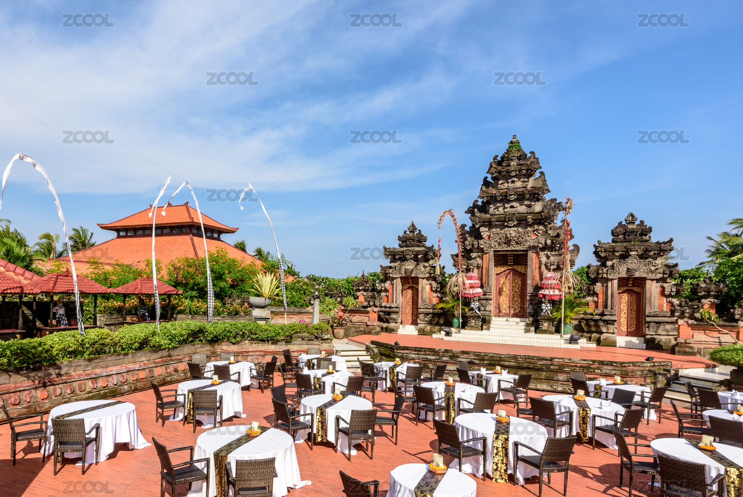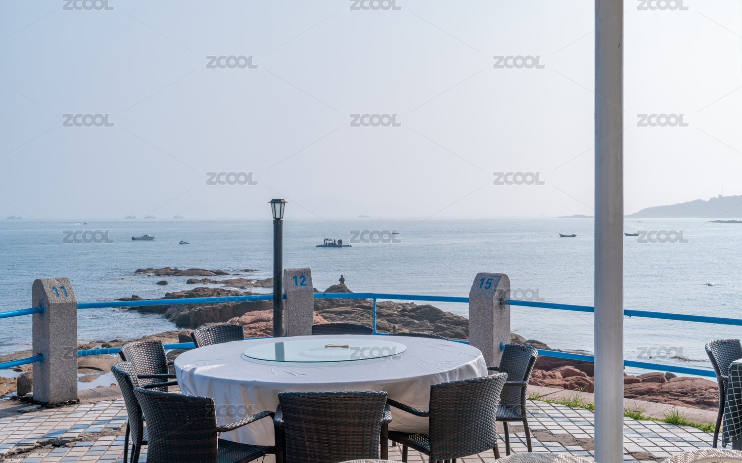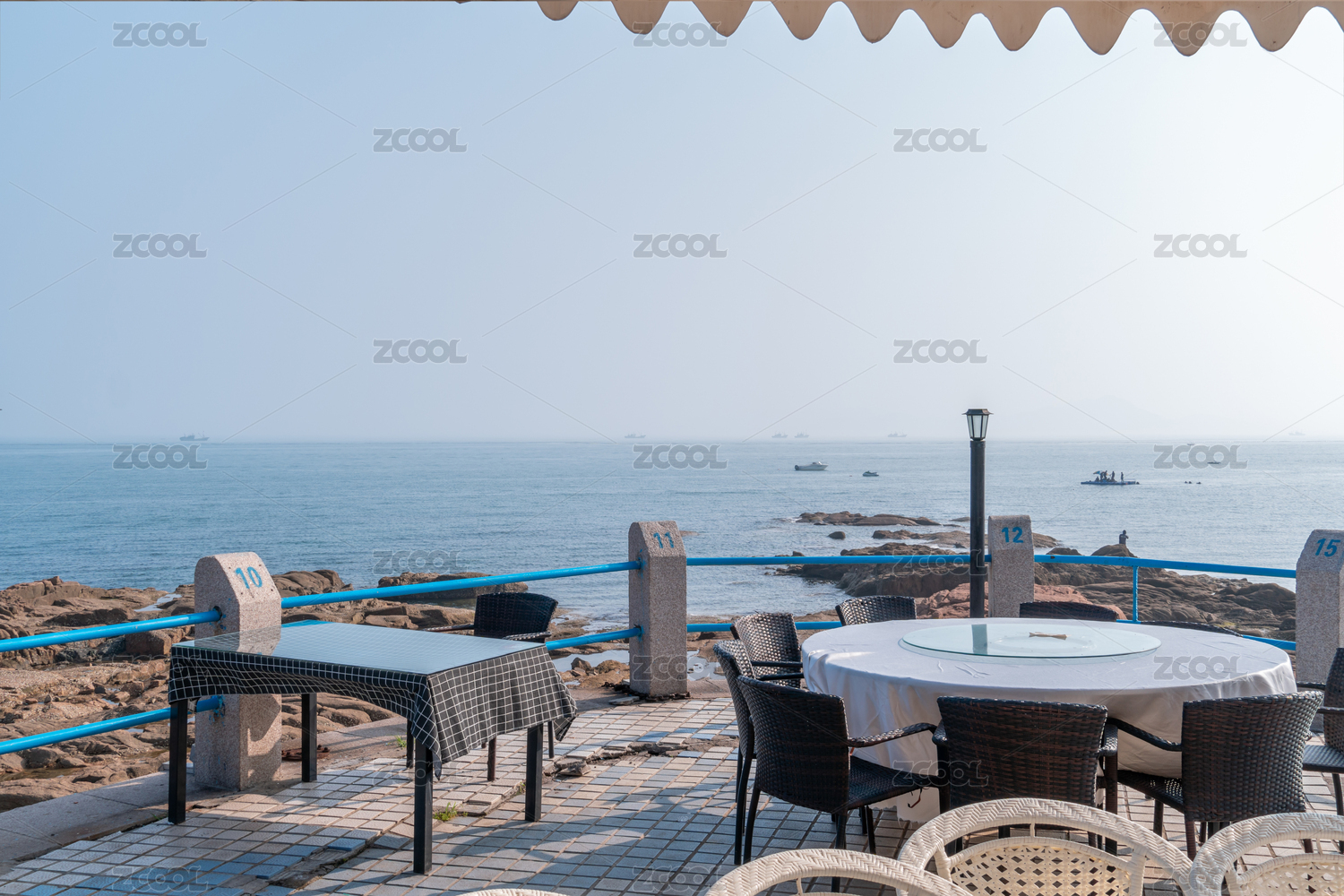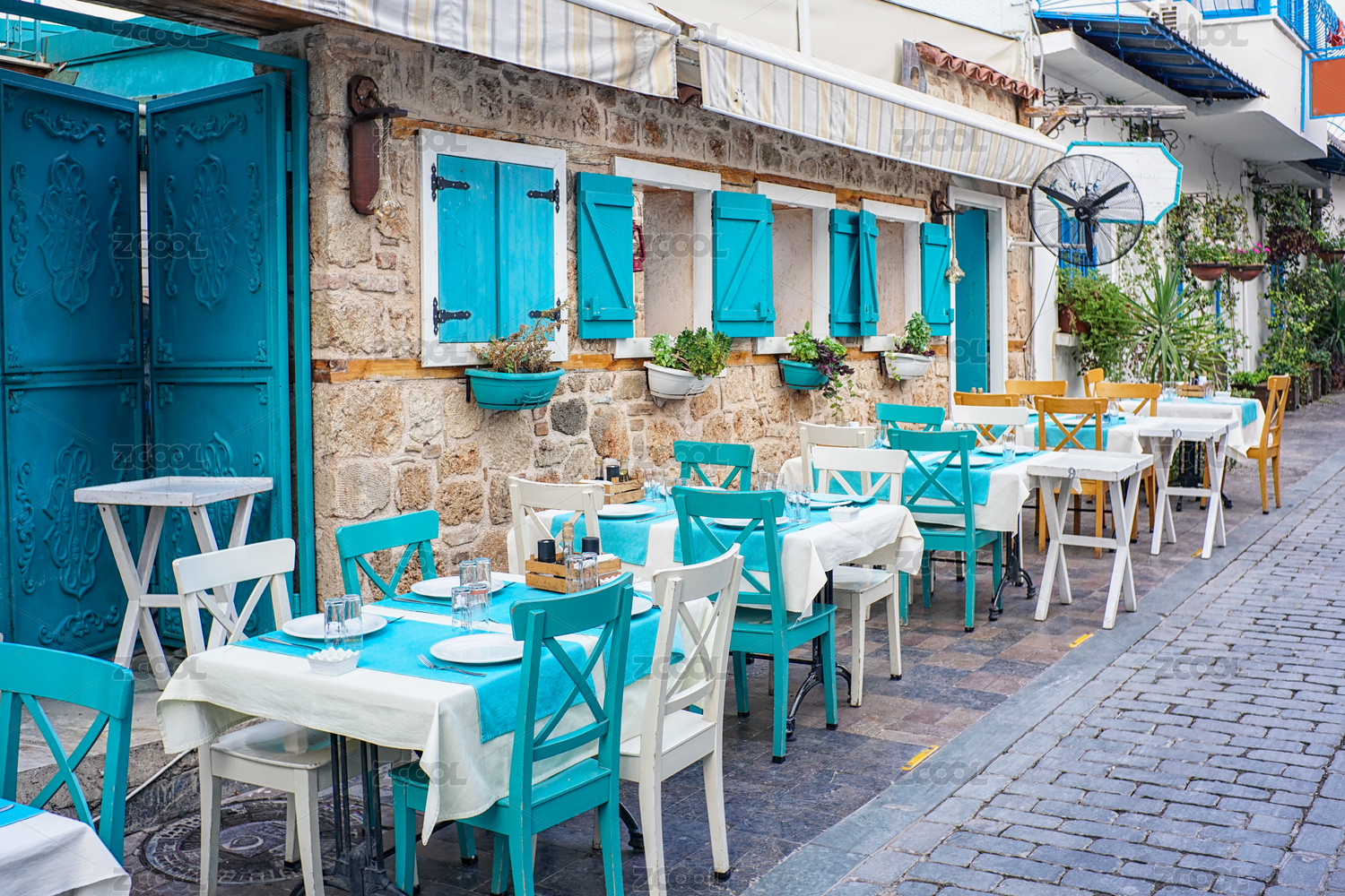 希腊爱琴海圣托里尼清新复古风格情调露天餐厅酒吧餐桌