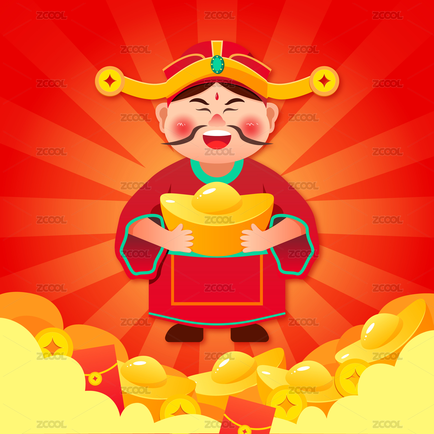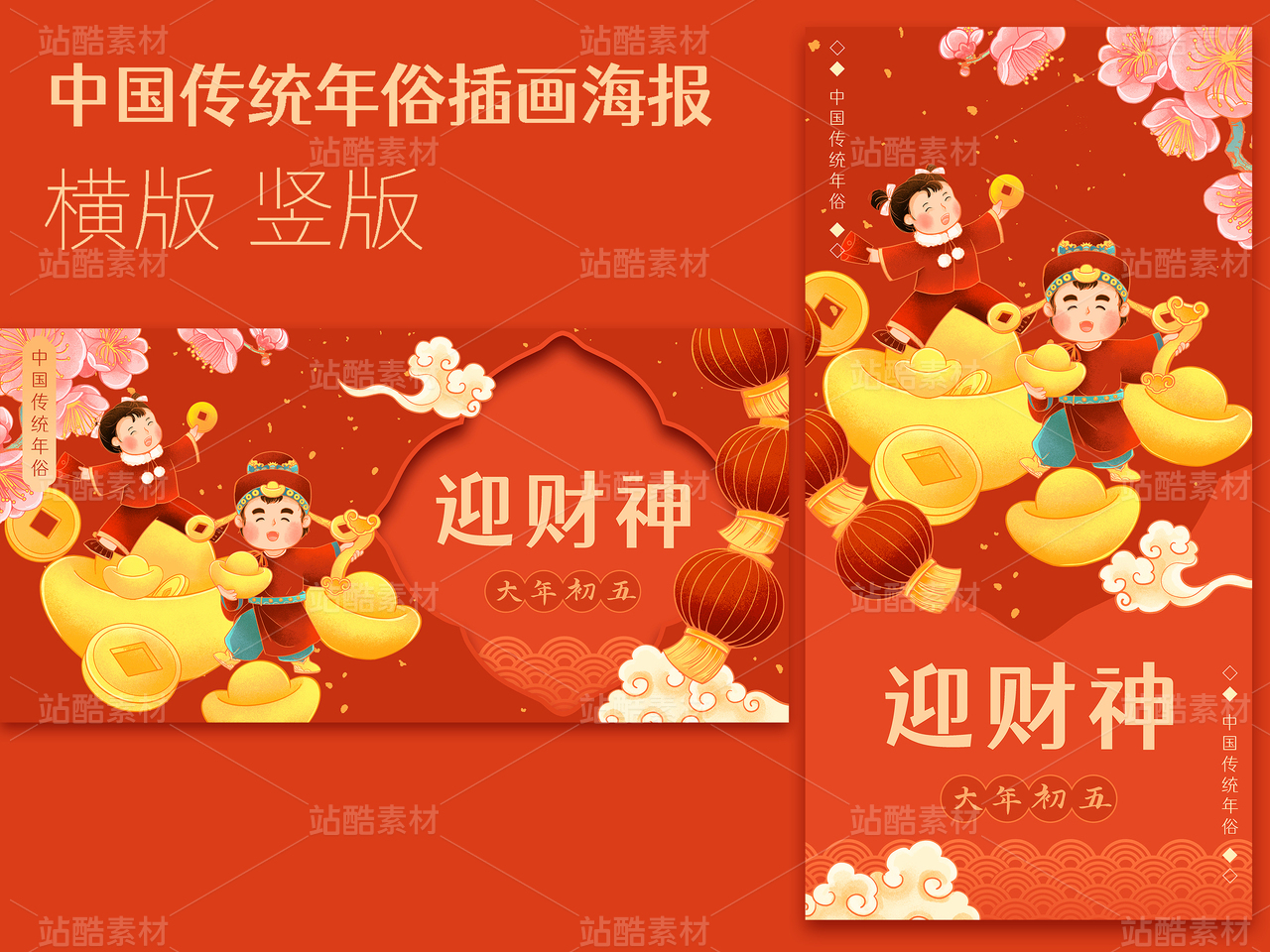 大年初五迎财神-红色背景无字