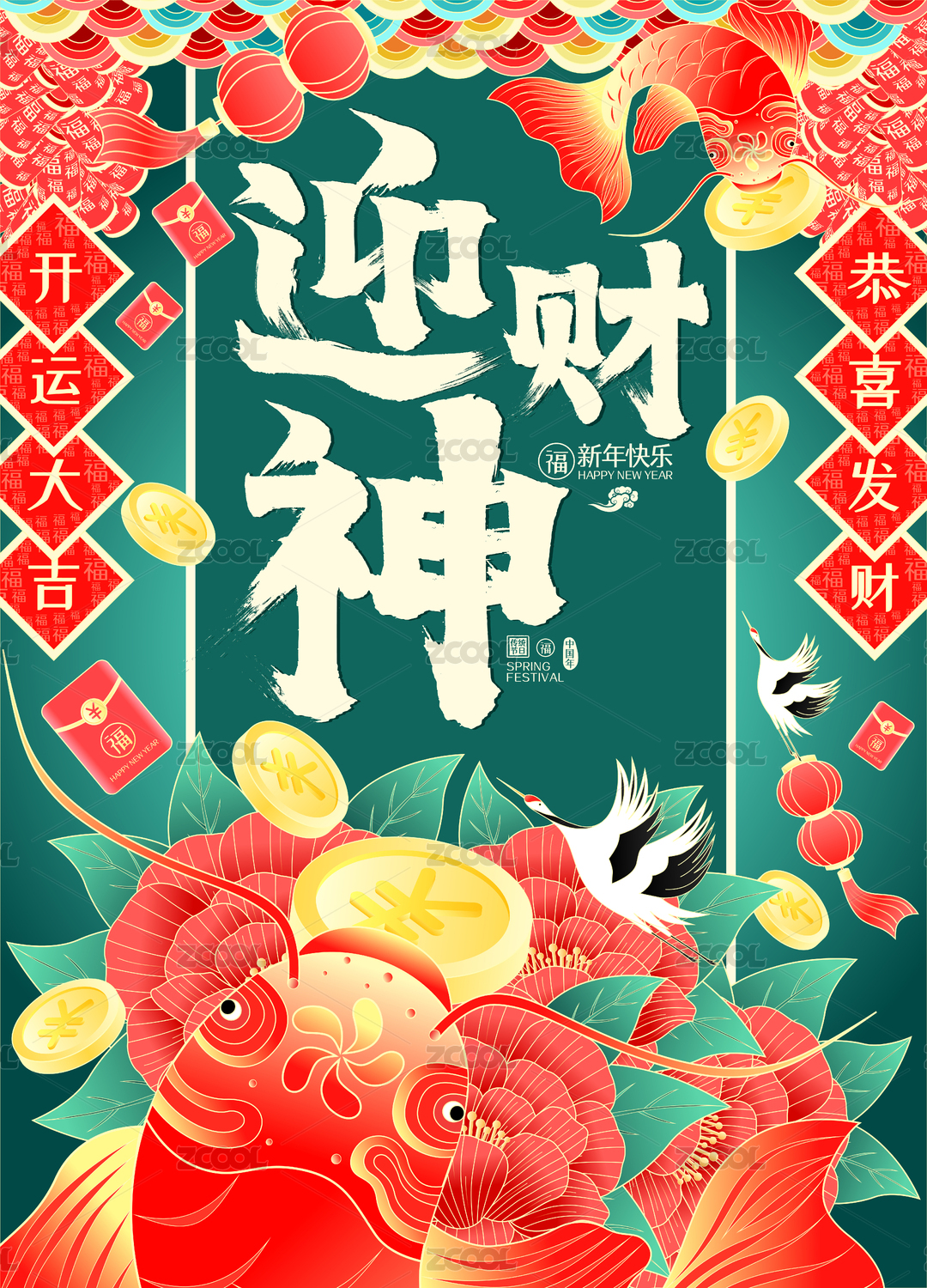 迎财神海报,红包封面