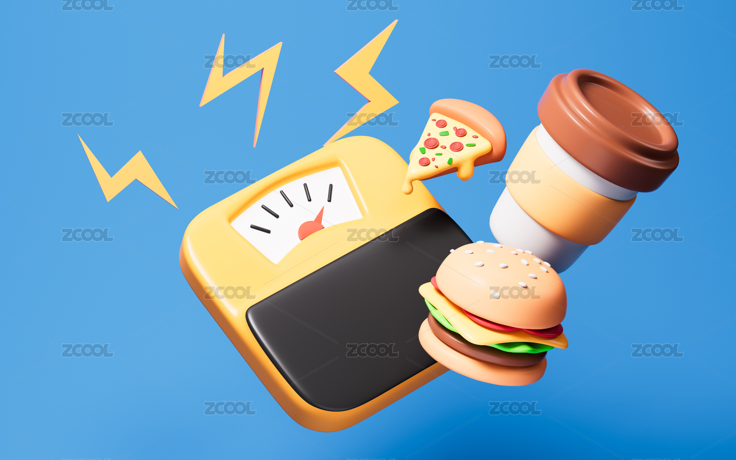快餐脂肪摄入体重超重概念3D渲染