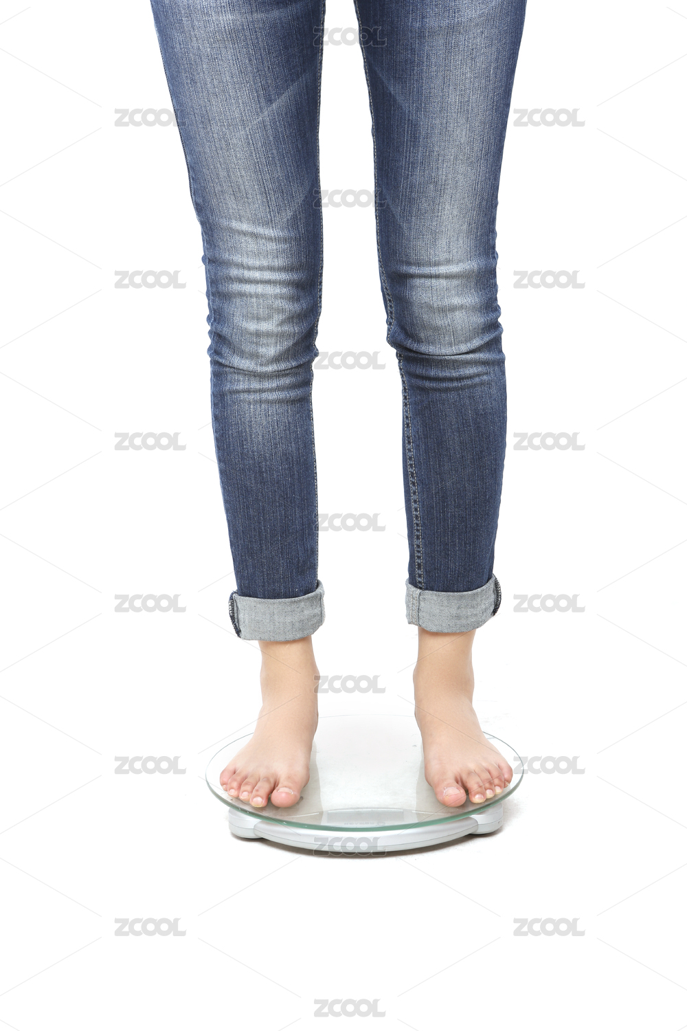 一个女人站在体重计