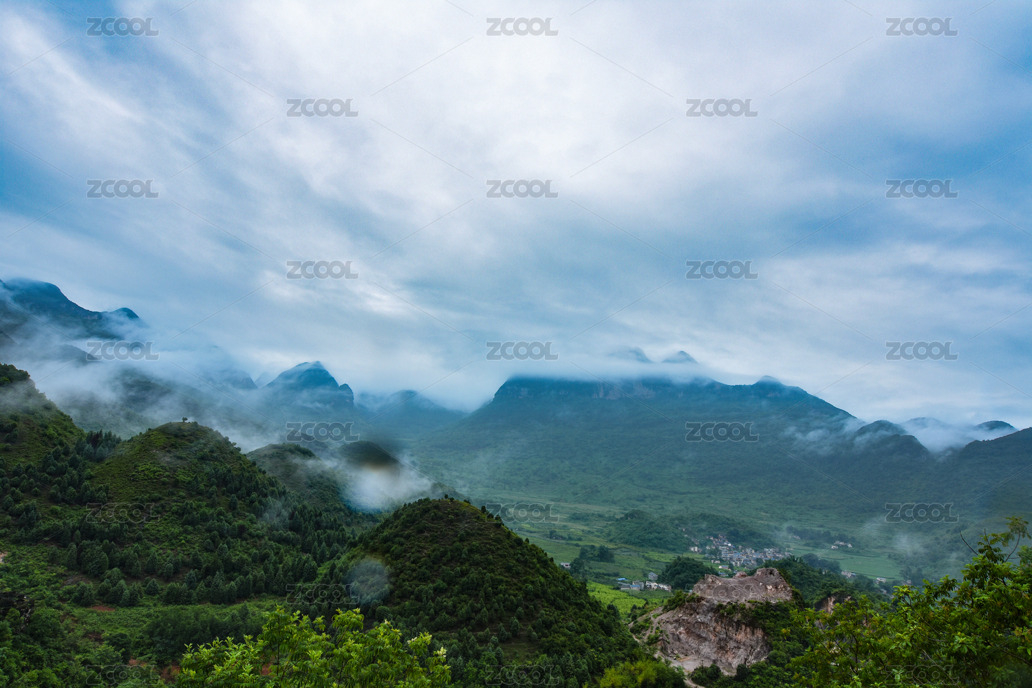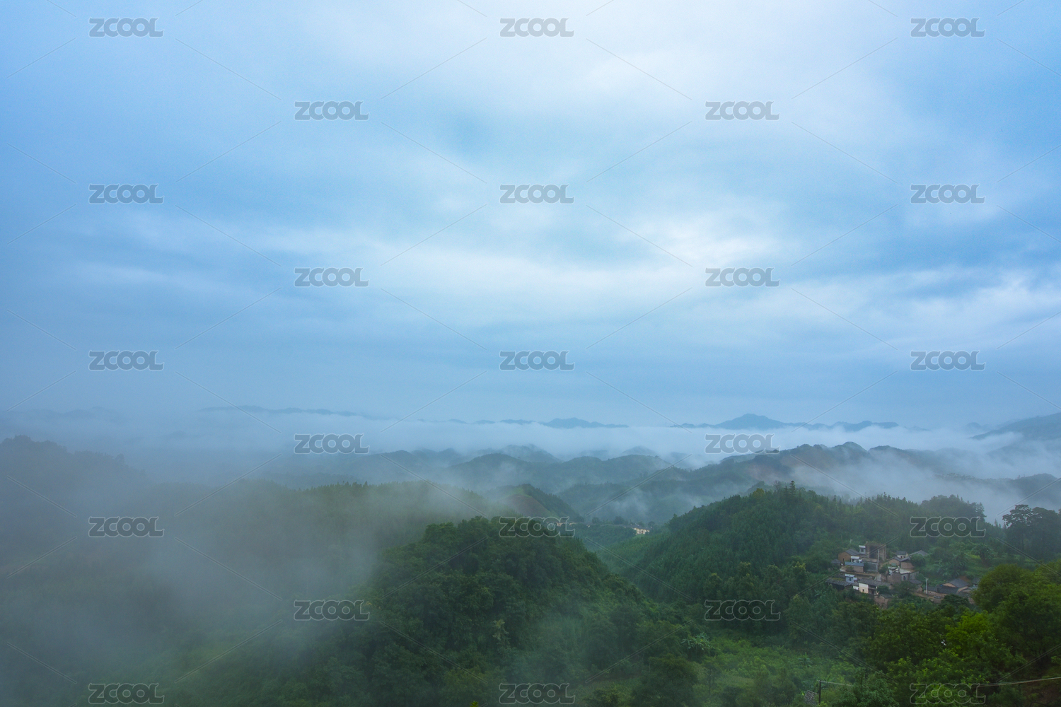四川西部山区雨雾缭绕的绿色森林自然风景