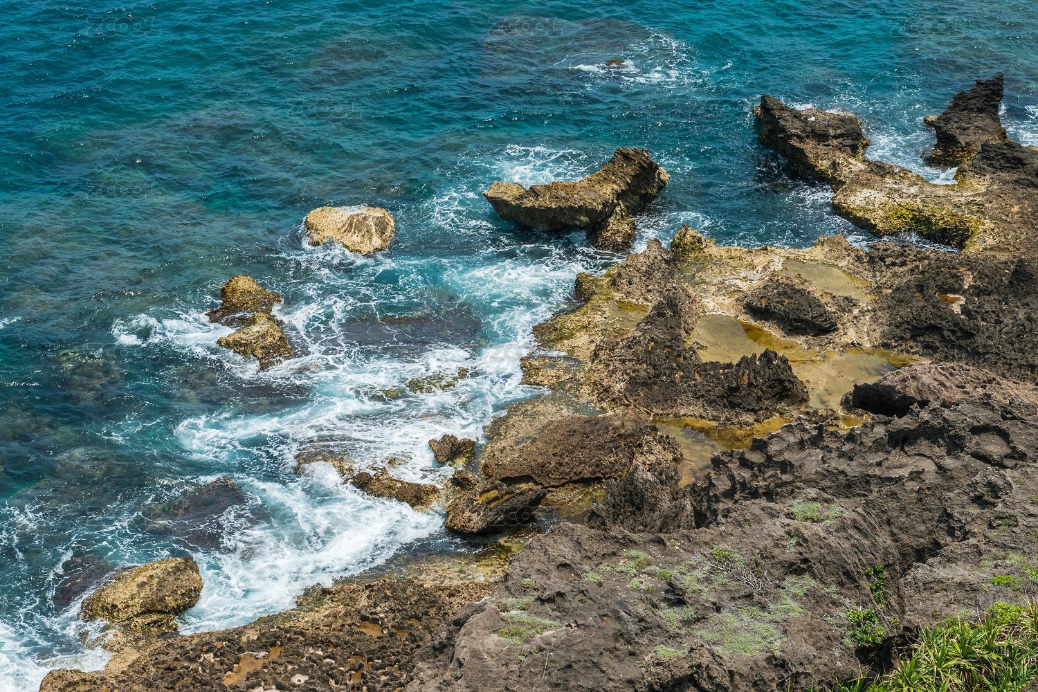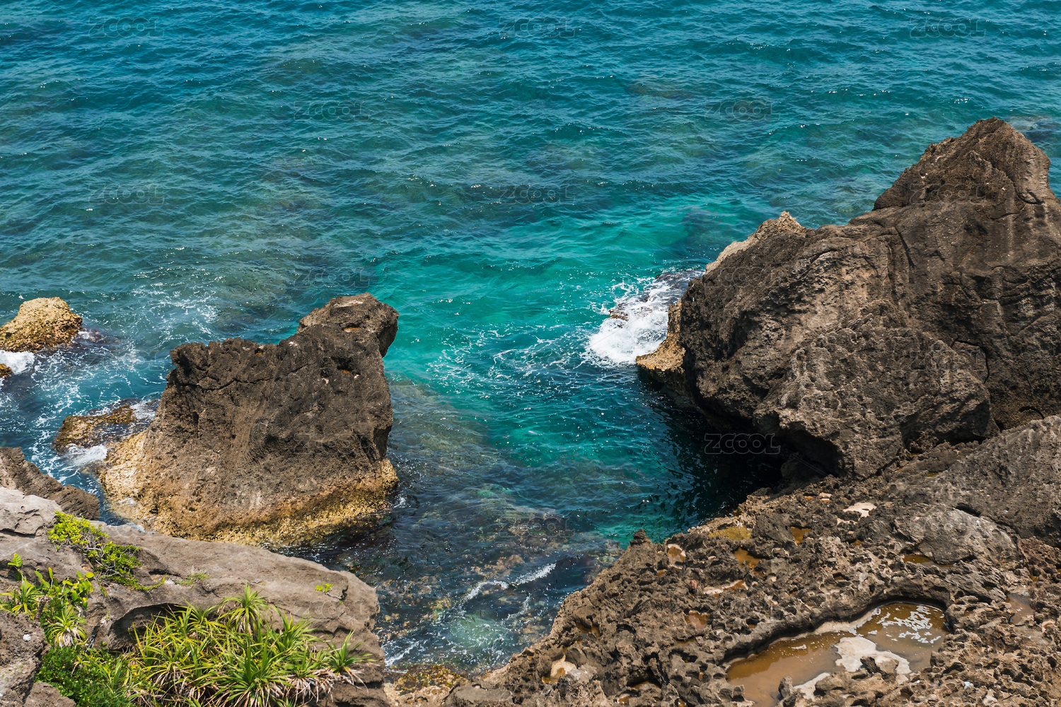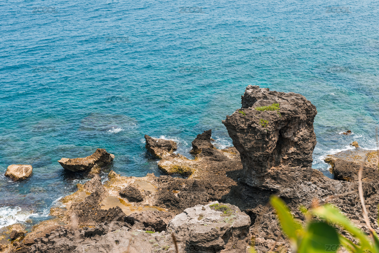中国台湾屏东县垦丁的礁石与斑斓的海面