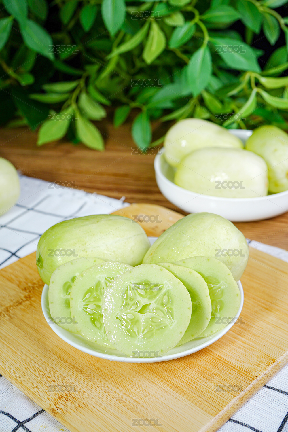 木底上放着一盘切开的玉女小黄瓜