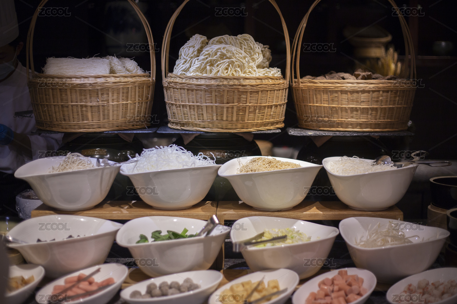 酒店自助餐碗中放着各种水果奶枣香蕉火龙果