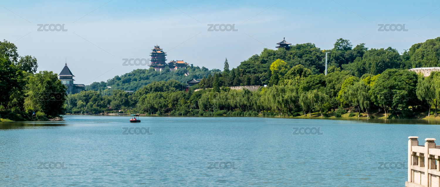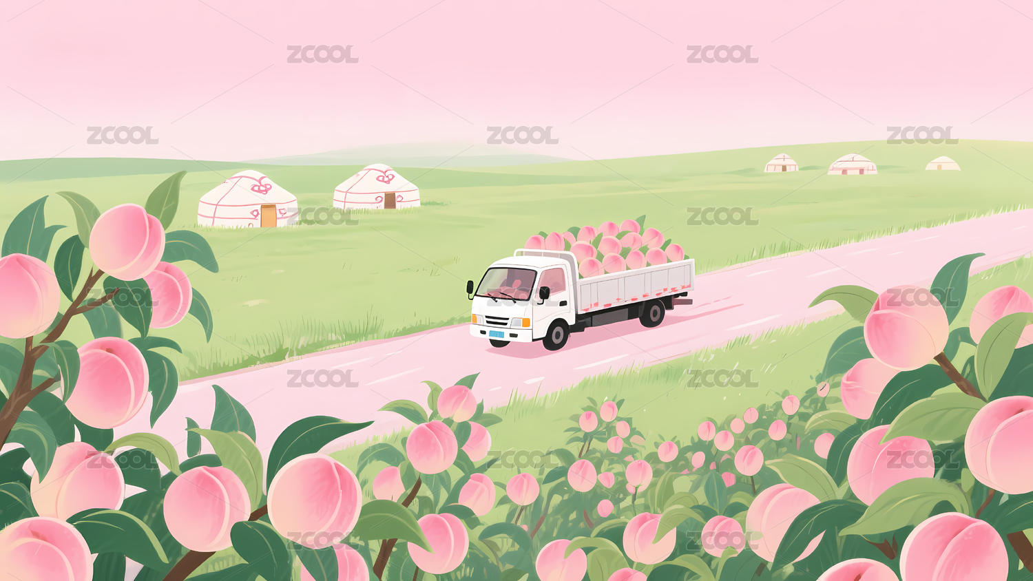 小桃园金黄美人蕉绽放绿意盎然映夏景