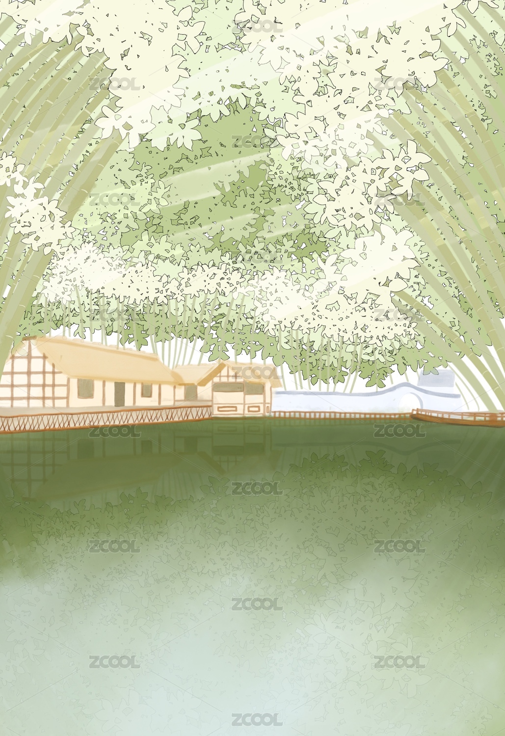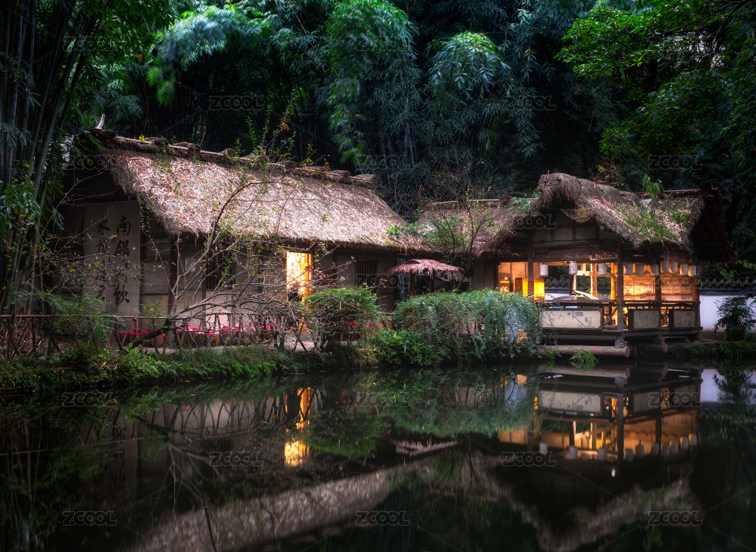 成都杜甫草堂的水面和中式建筑