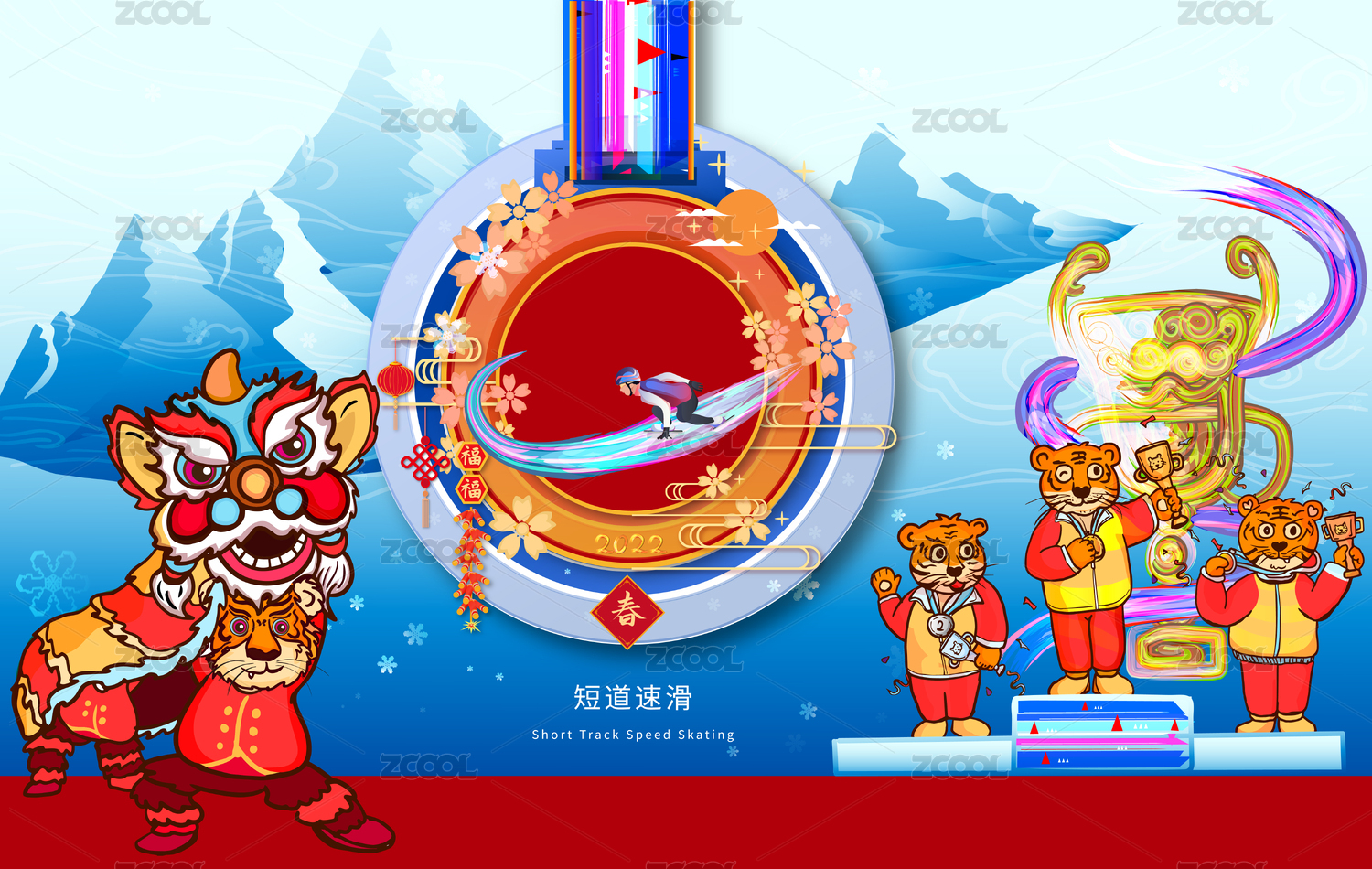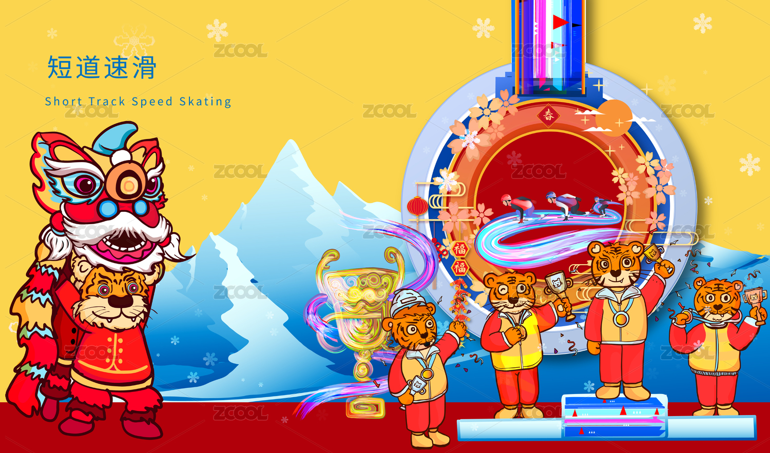 冬奥会滑冰比赛运动插画冬天短道速滑海报