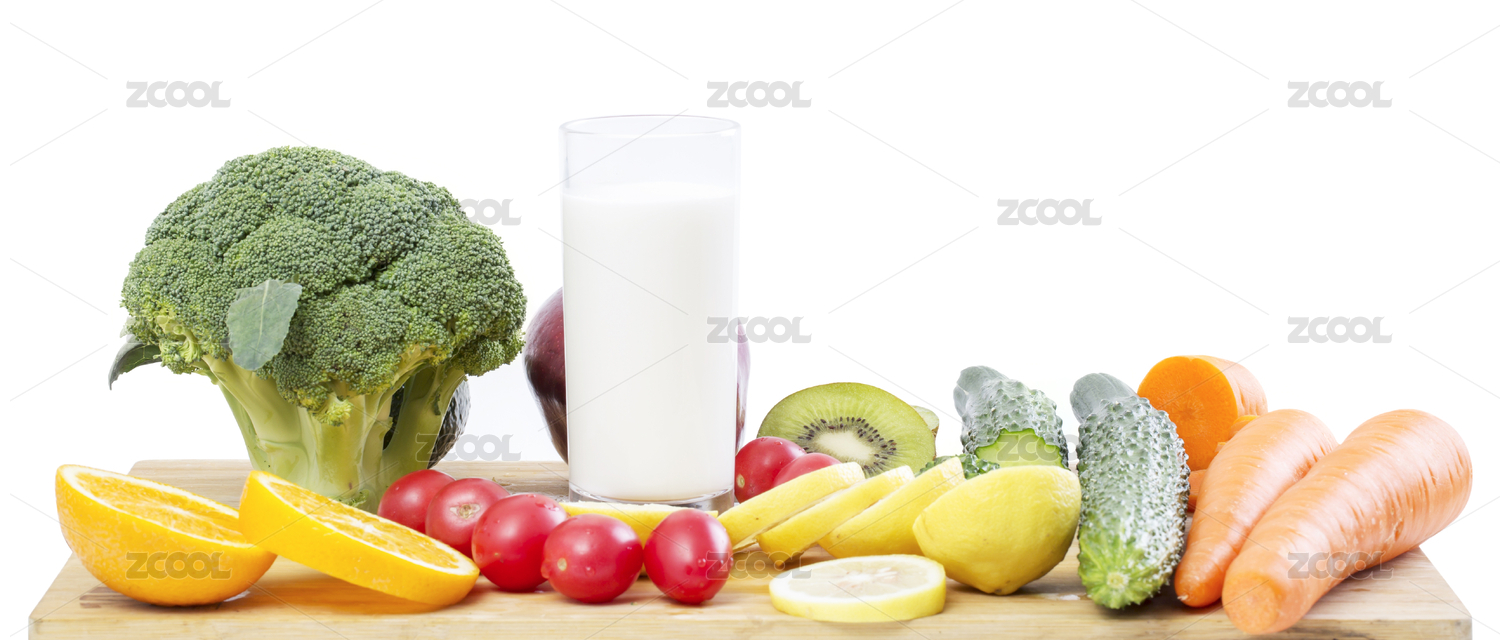 健康饮食,新鲜的牛奶和一些水果蔬菜
