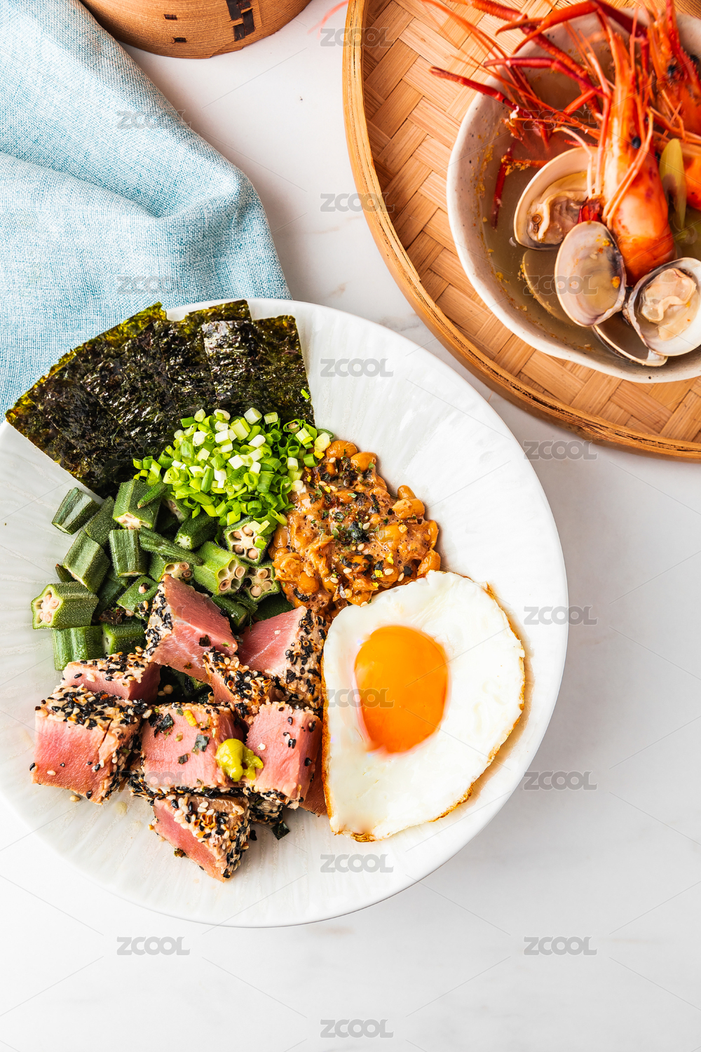 健康饮食 金枪鱼海苔秋葵拌纳豆