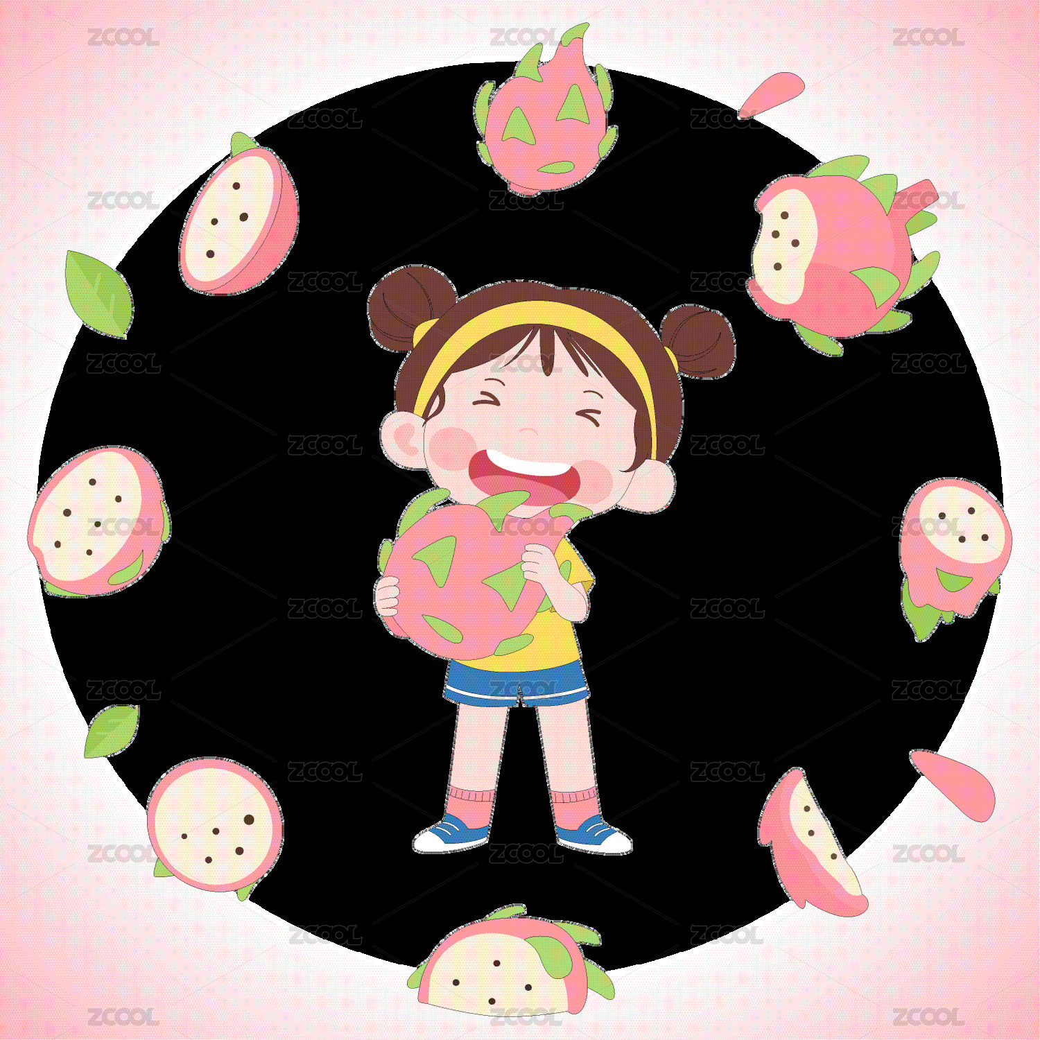 卡通风儿童健康饮食火龙果水果卡片教育插画