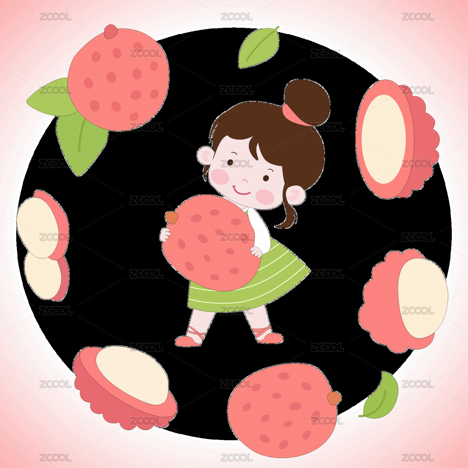 卡通风儿童健康饮食荔枝水果卡片教育插画