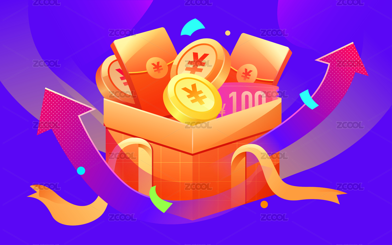 卡通存钱理财信用卡礼包金融活动背景矢量插画