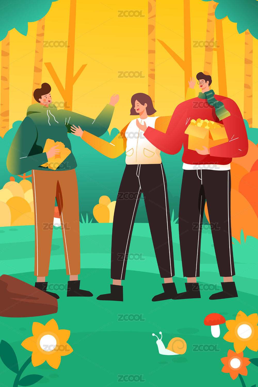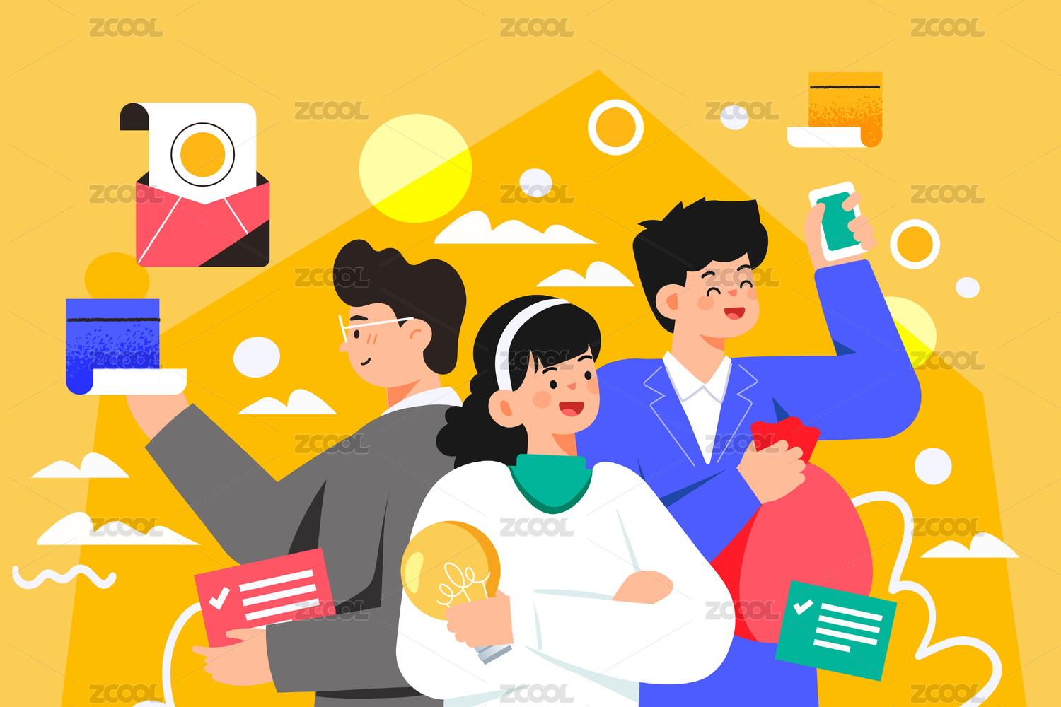 卡通人物快乐赚钱获取收益矢量插画背景素材