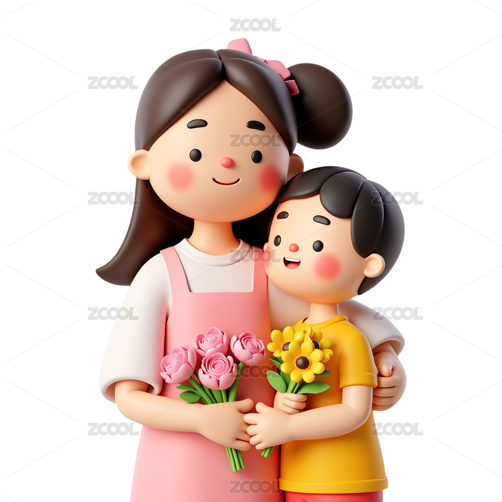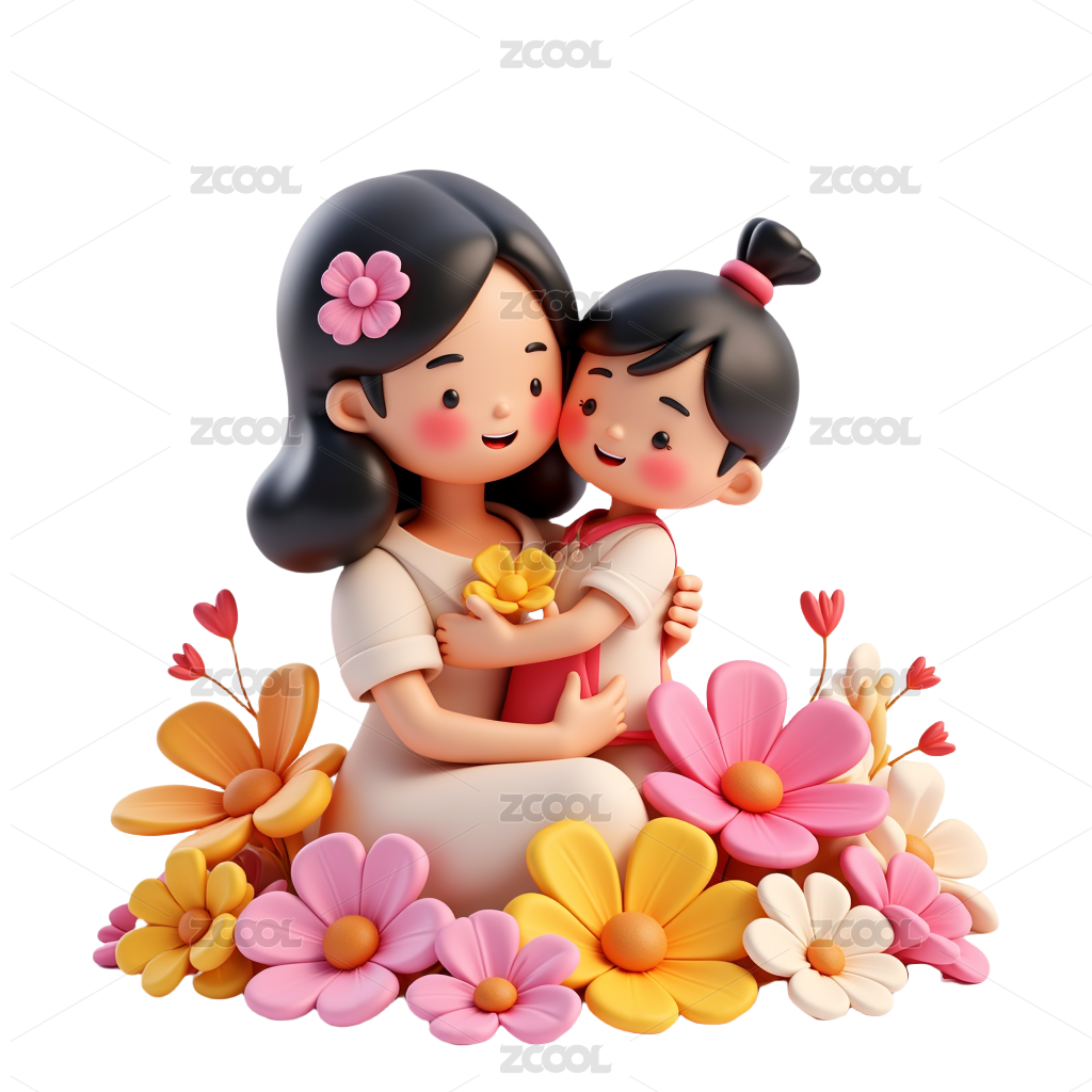 2款母亲节慈爱的妈妈拥抱女儿Png免抠素材3D风格