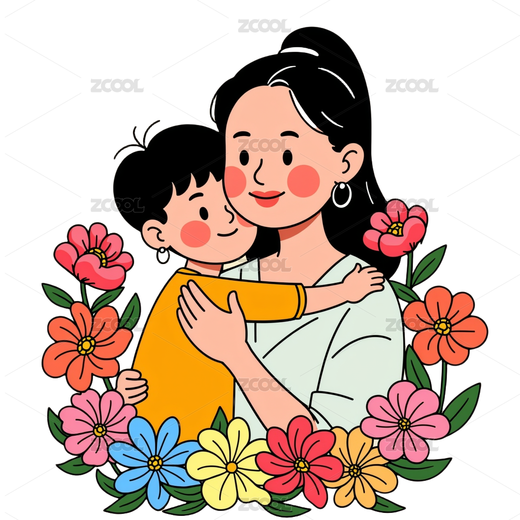 母亲节慈爱的妈妈拥抱女儿Png免抠素材卡通扁平风格