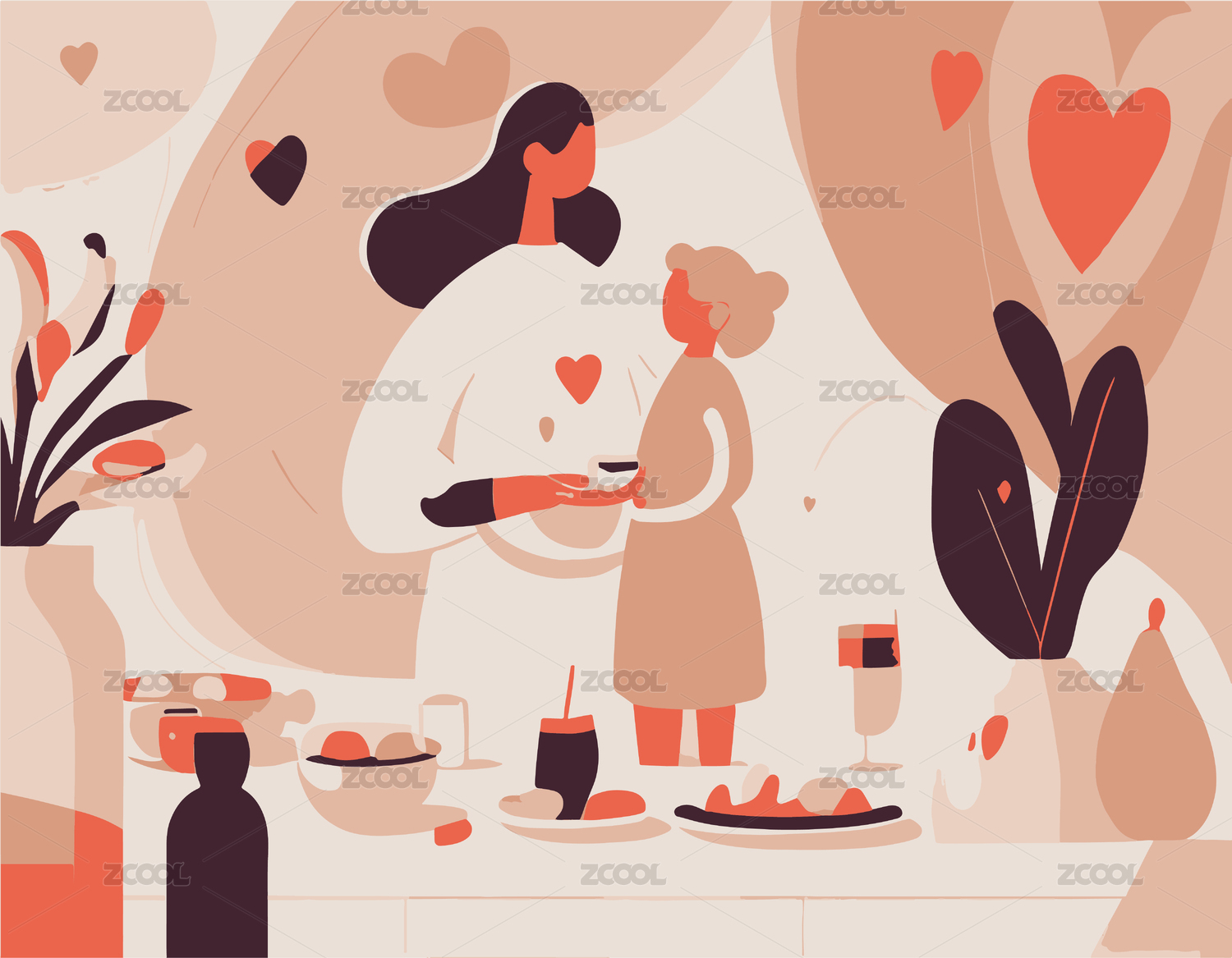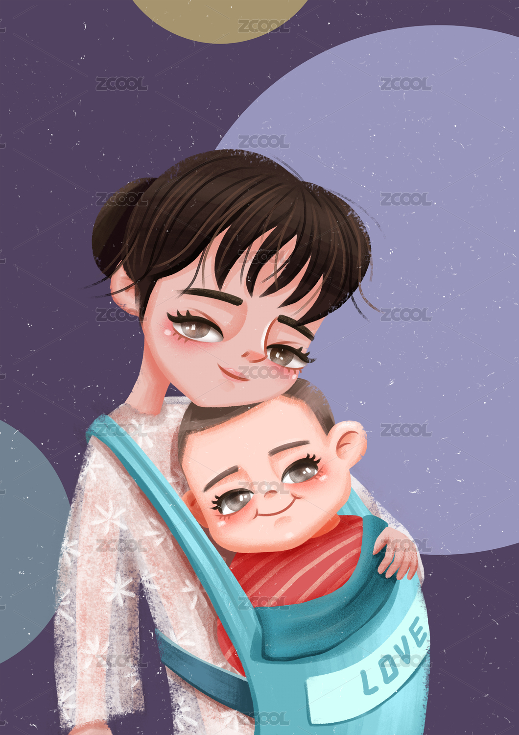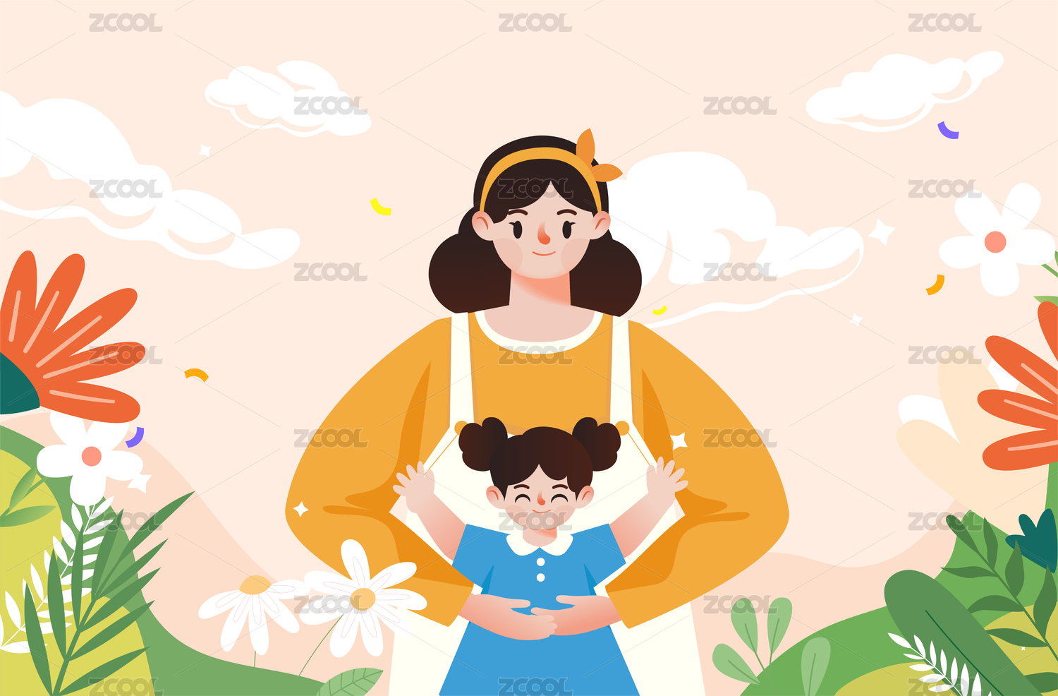 母亲节插画:女儿拥抱着母亲,妈妈辛苦了~爱你!