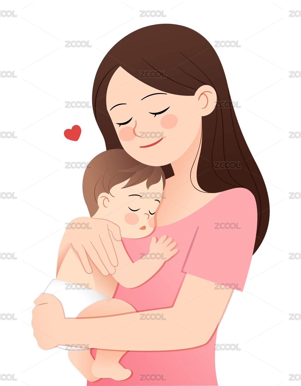 母亲节慈爱的妈妈拥抱女儿Png免抠素材扁平渐变风格