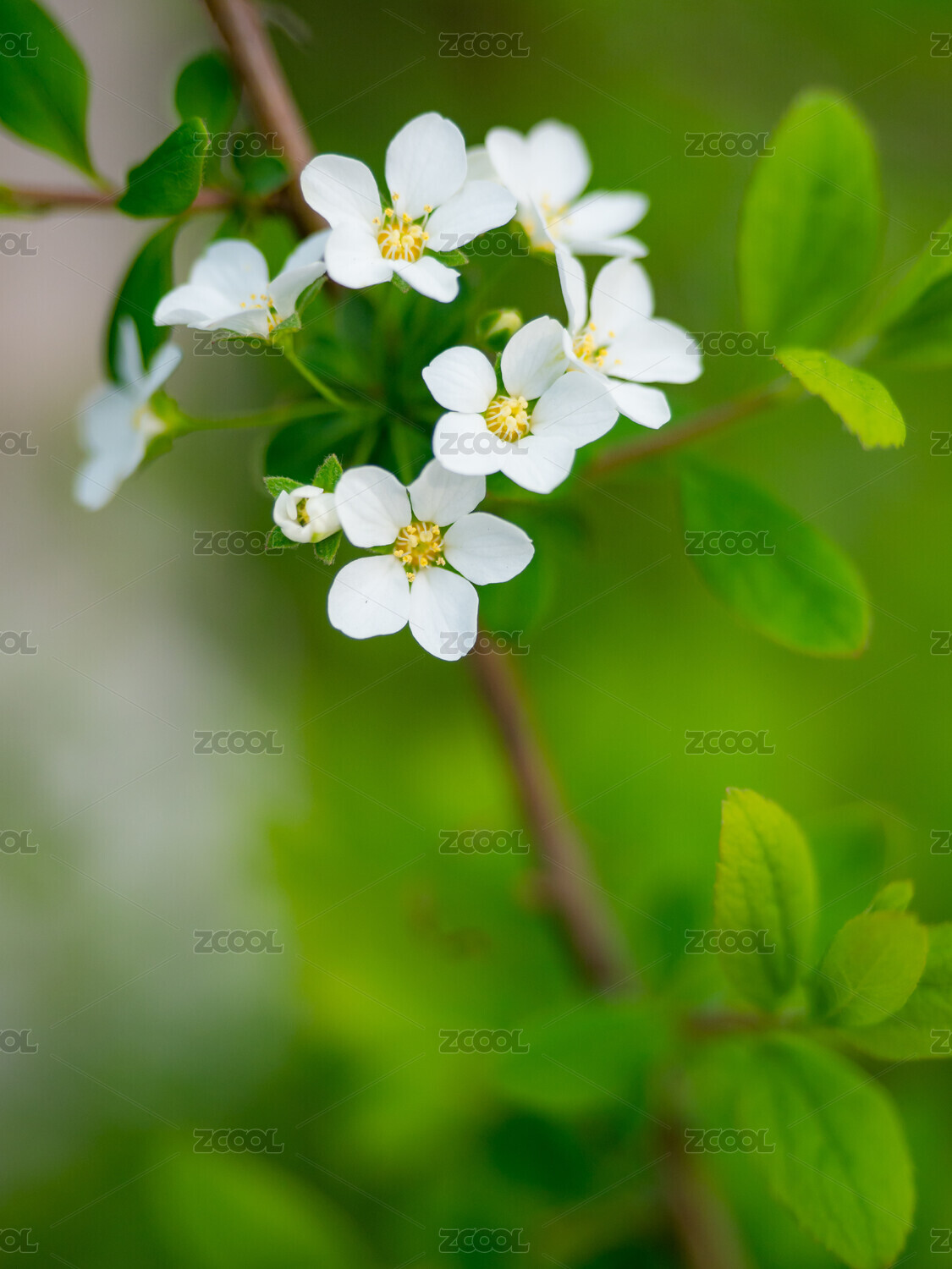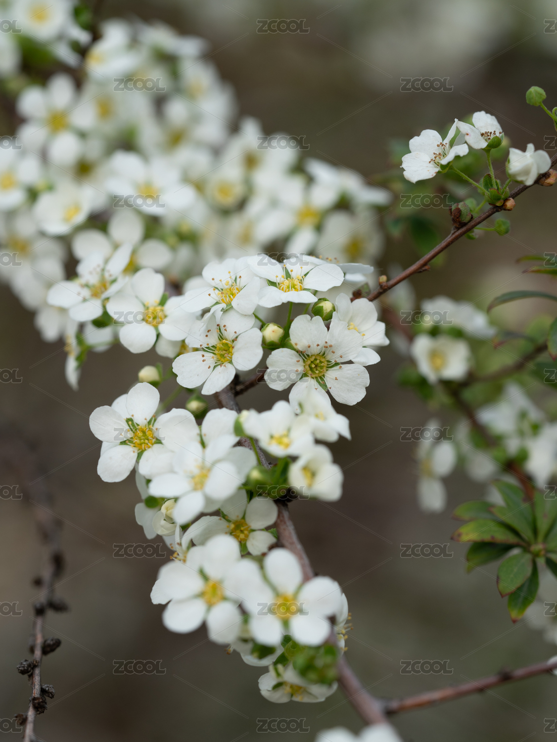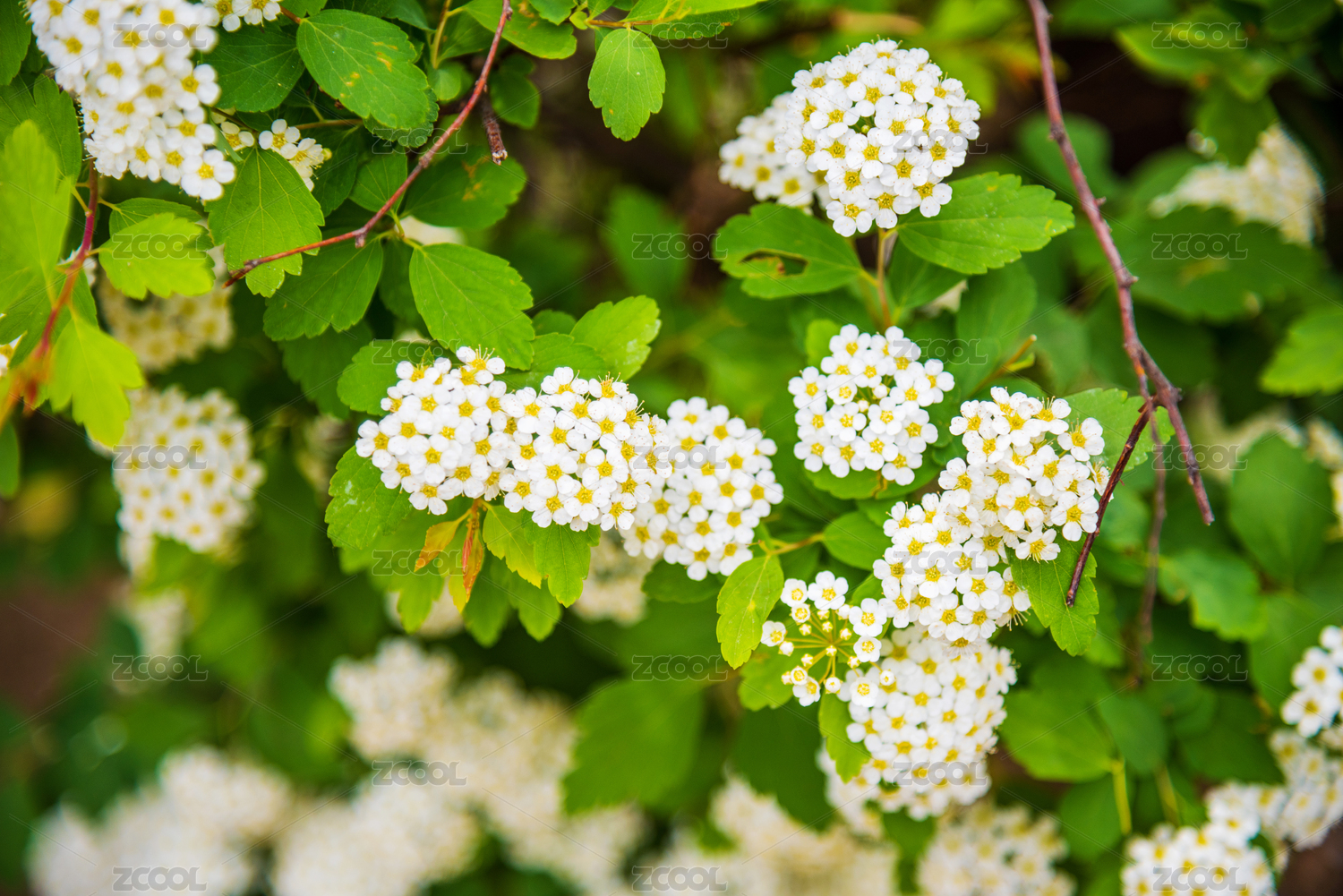 白色背景中的三裂绣线菊(Spiraea trilobata)