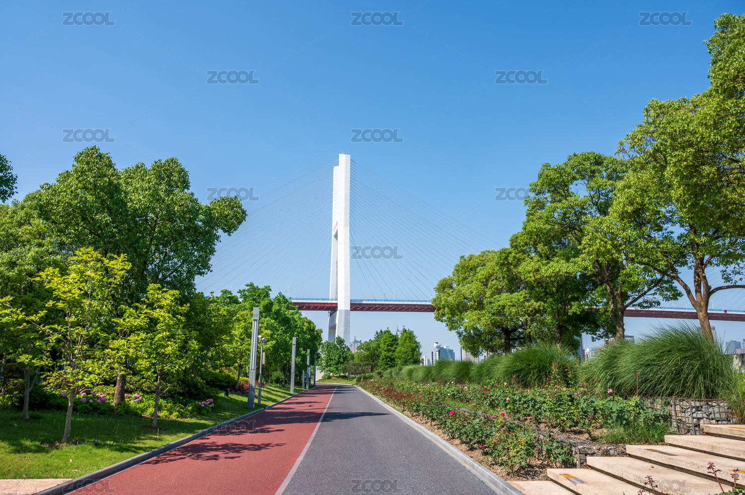 上海南浦大桥下黄浦江滨江公园的健身步道