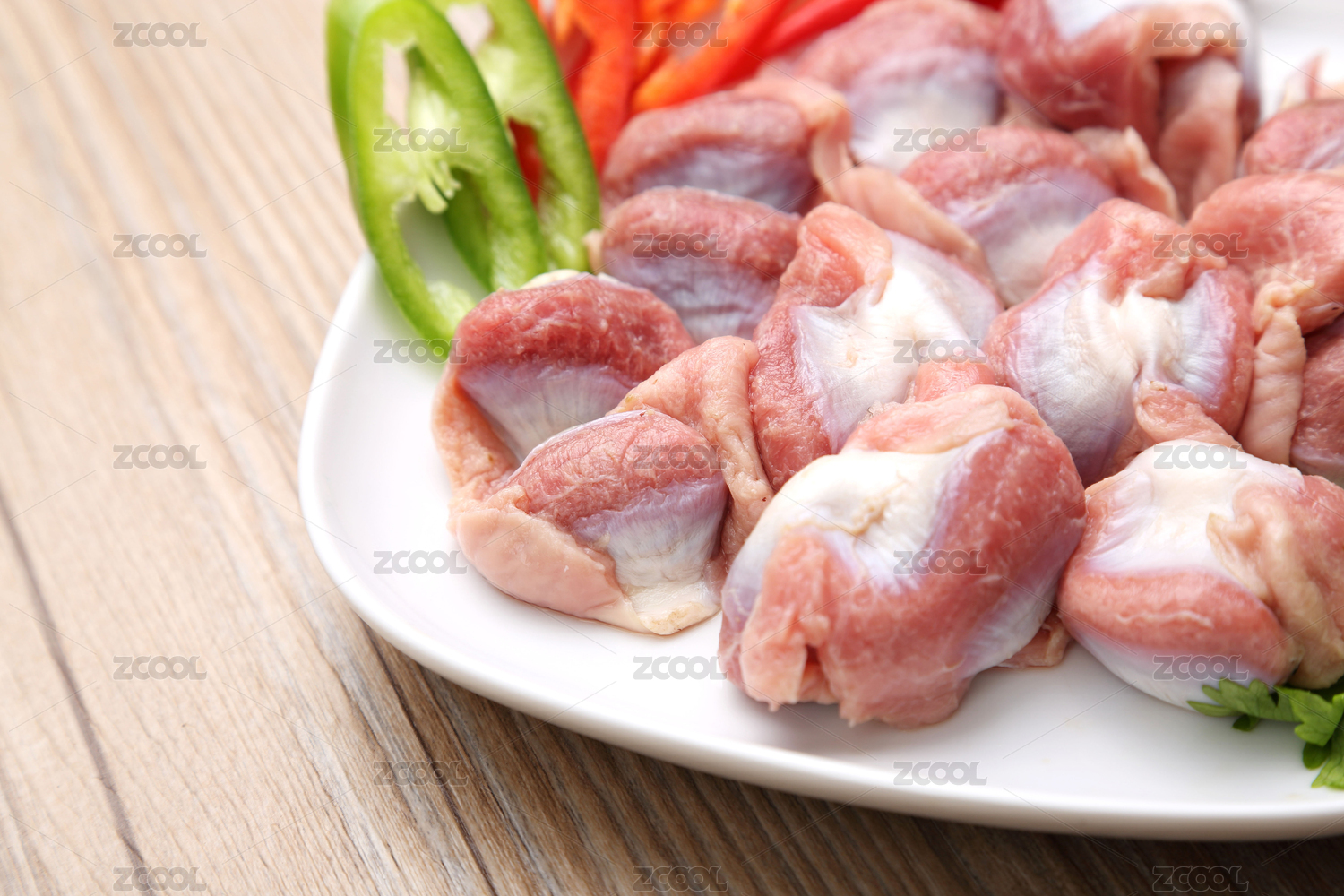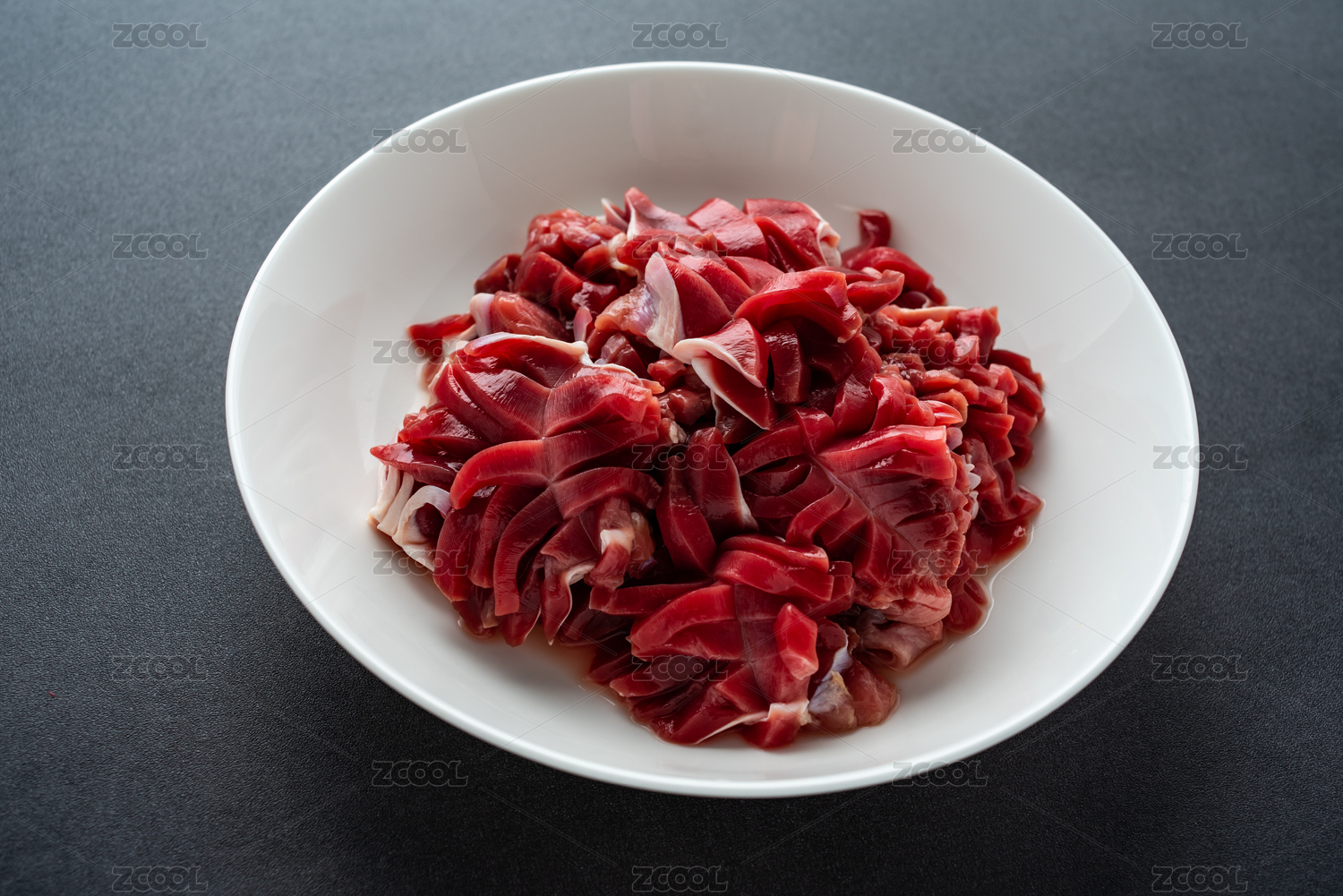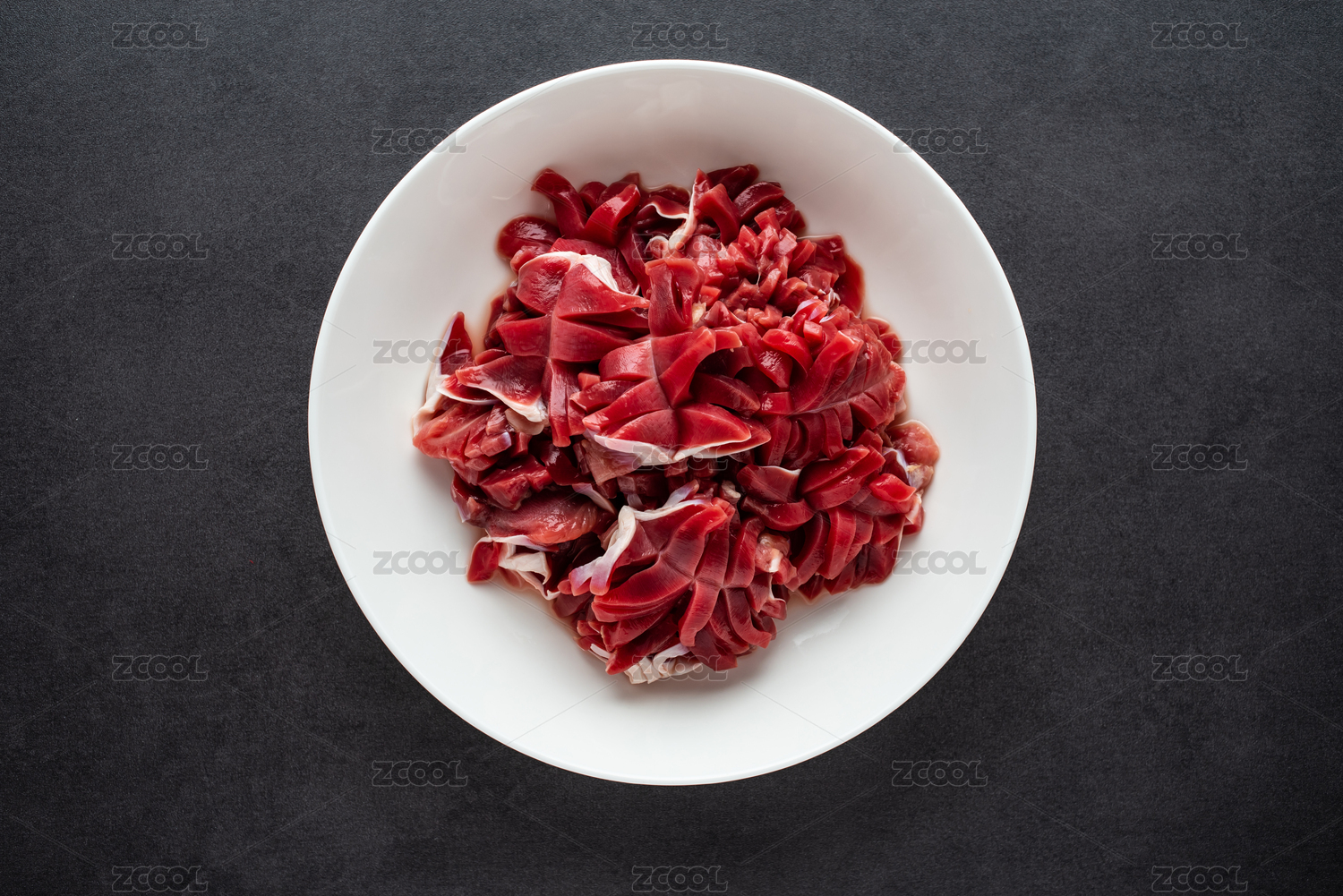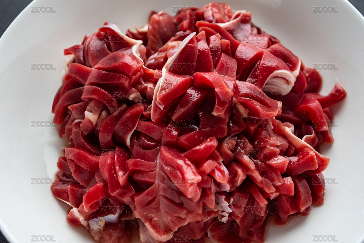 白色背景中的新鲜食材一碗鸡胗