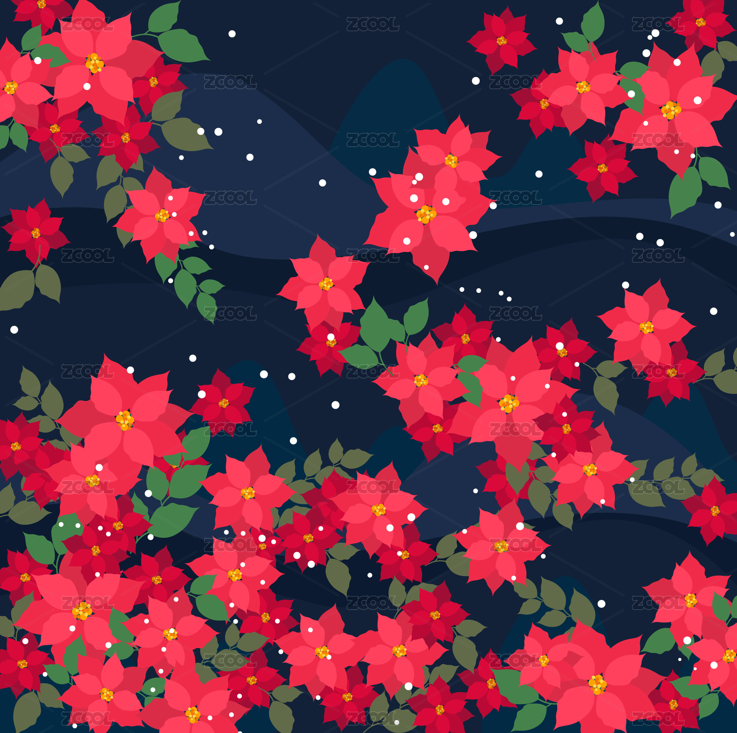 红色圣诞花图案