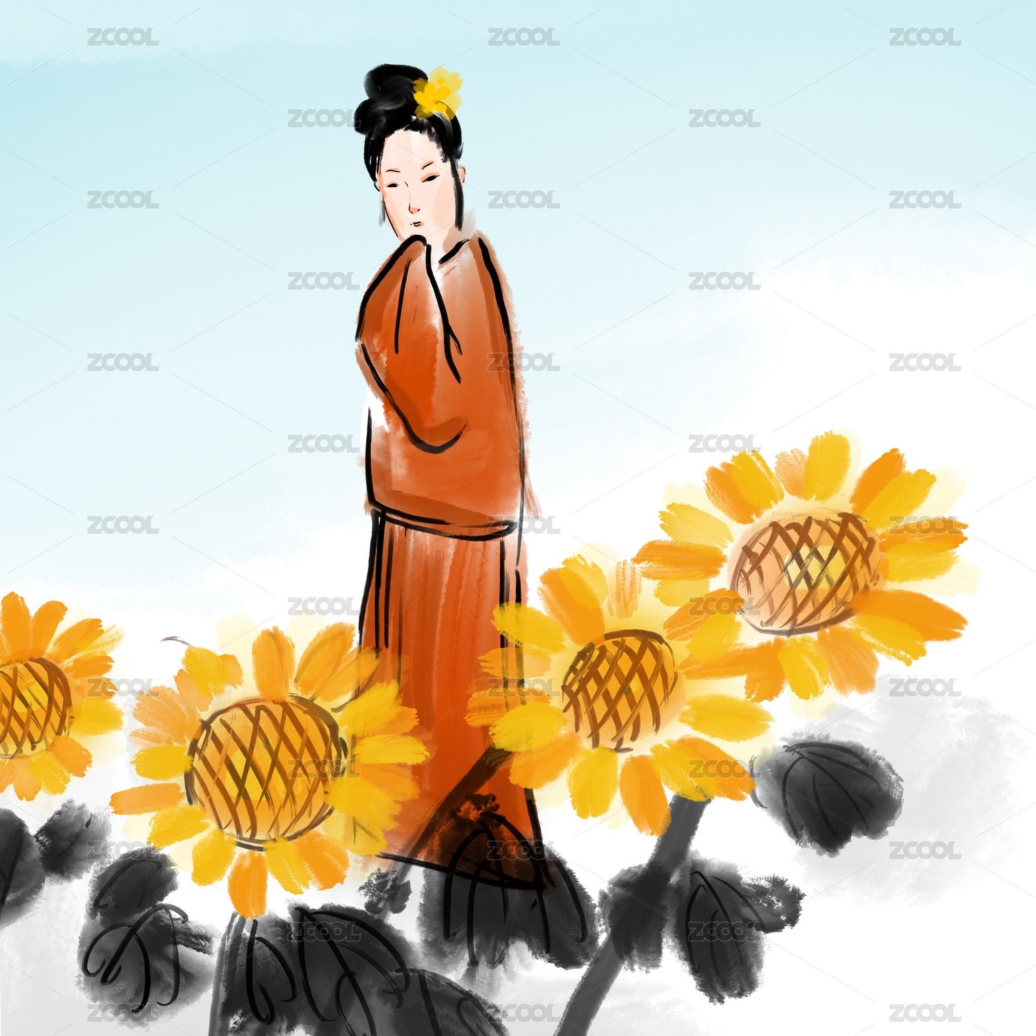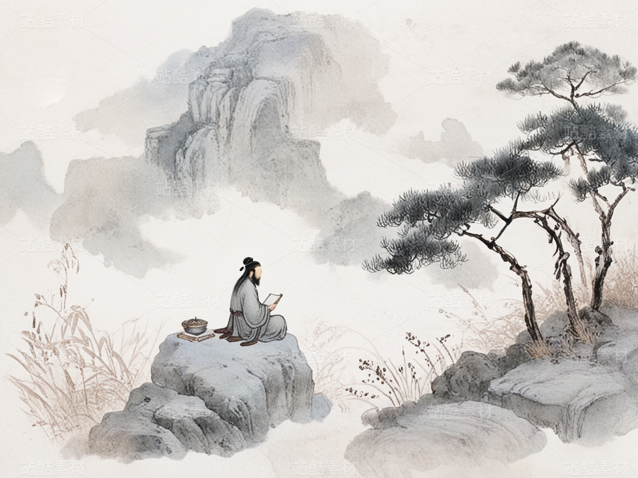 国画水墨人物画江南风景画水墨人物画水墨江南水乡山乡