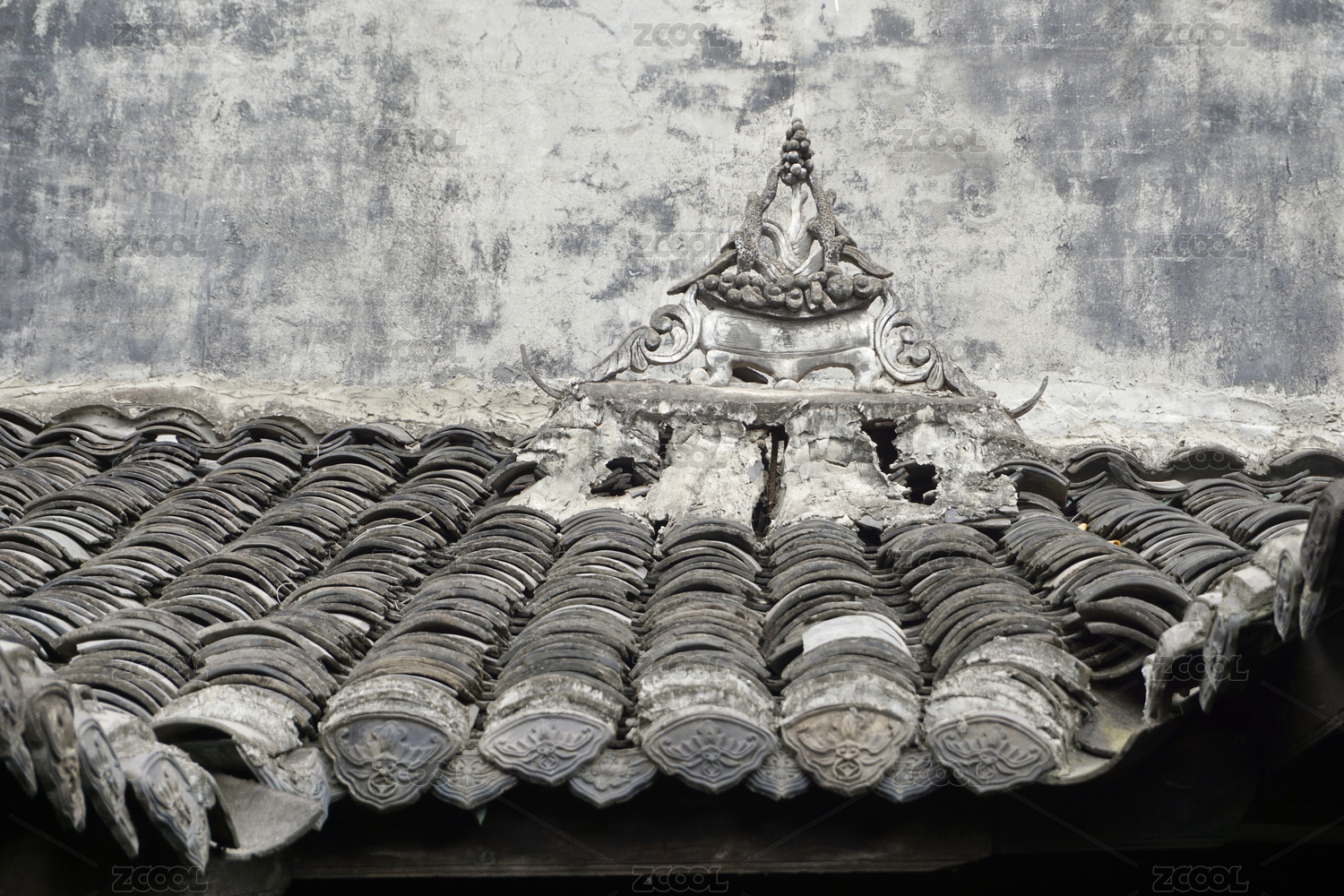 四川成都洛带古镇民居天井青瓦屋顶及防火墙