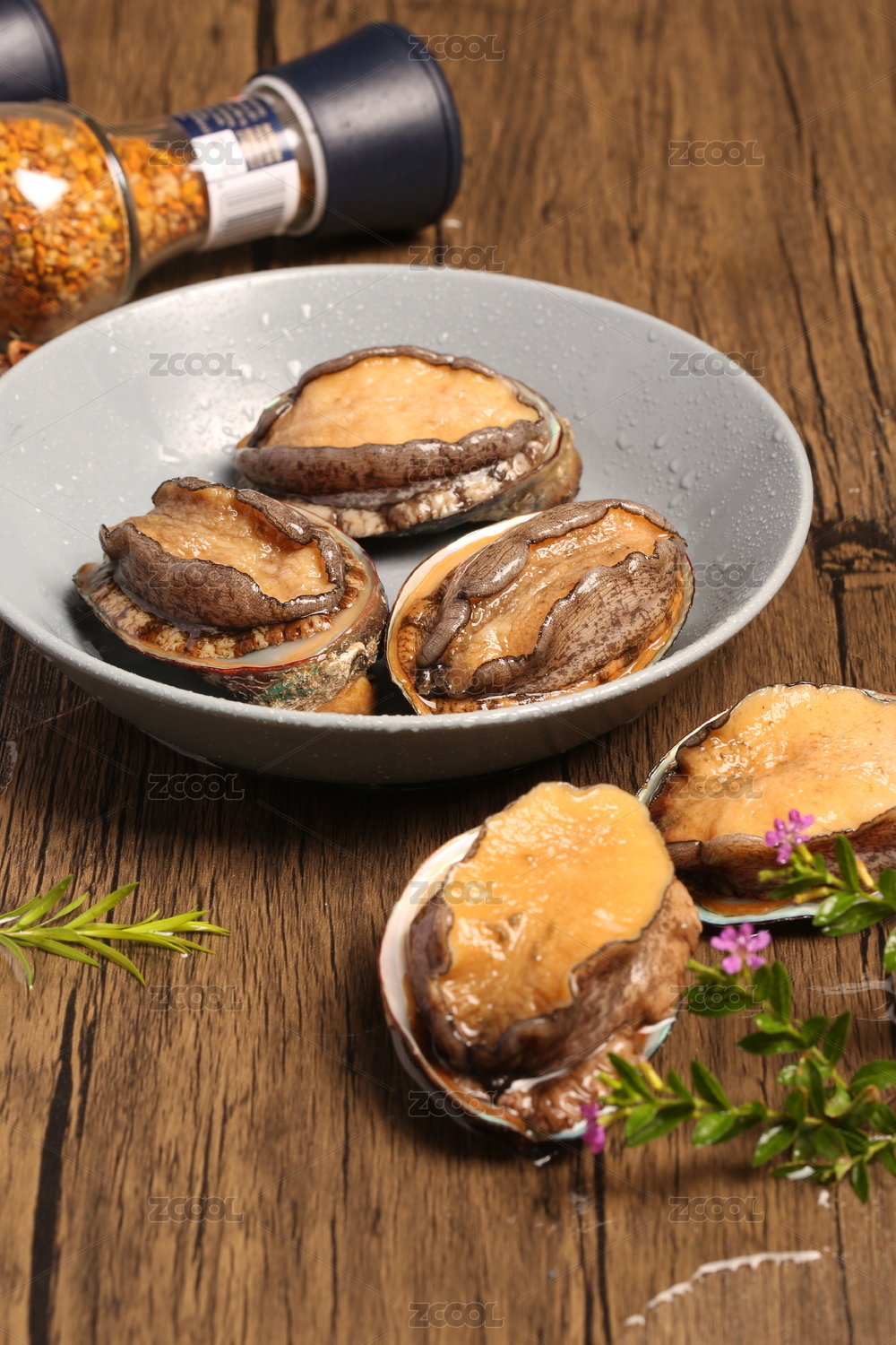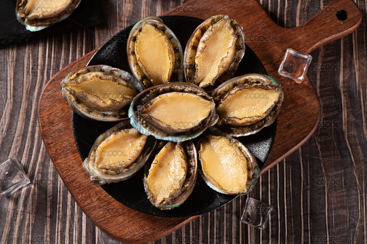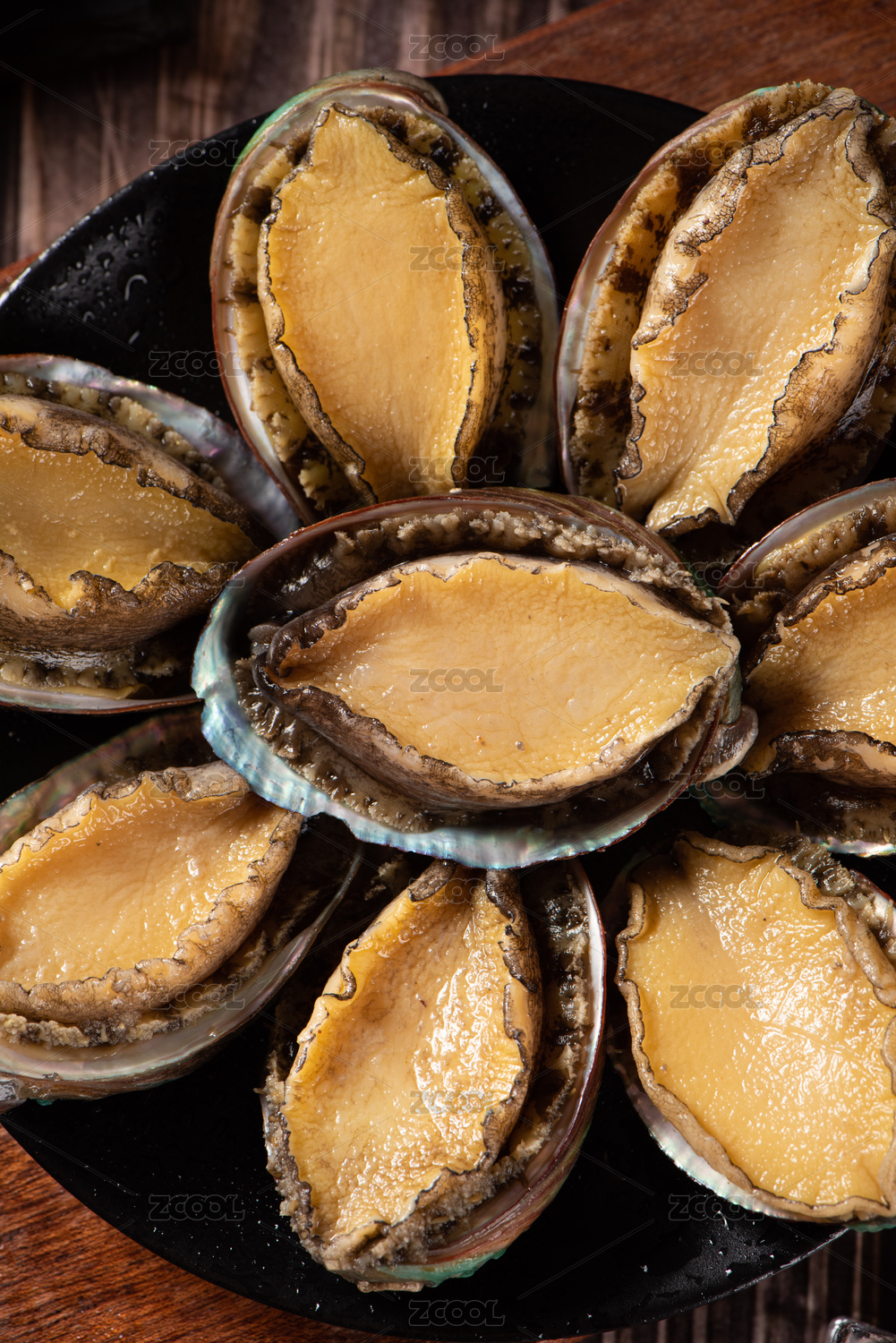 木底上放着一盘鲜活鲍鱼