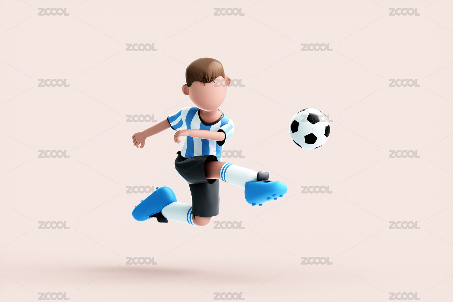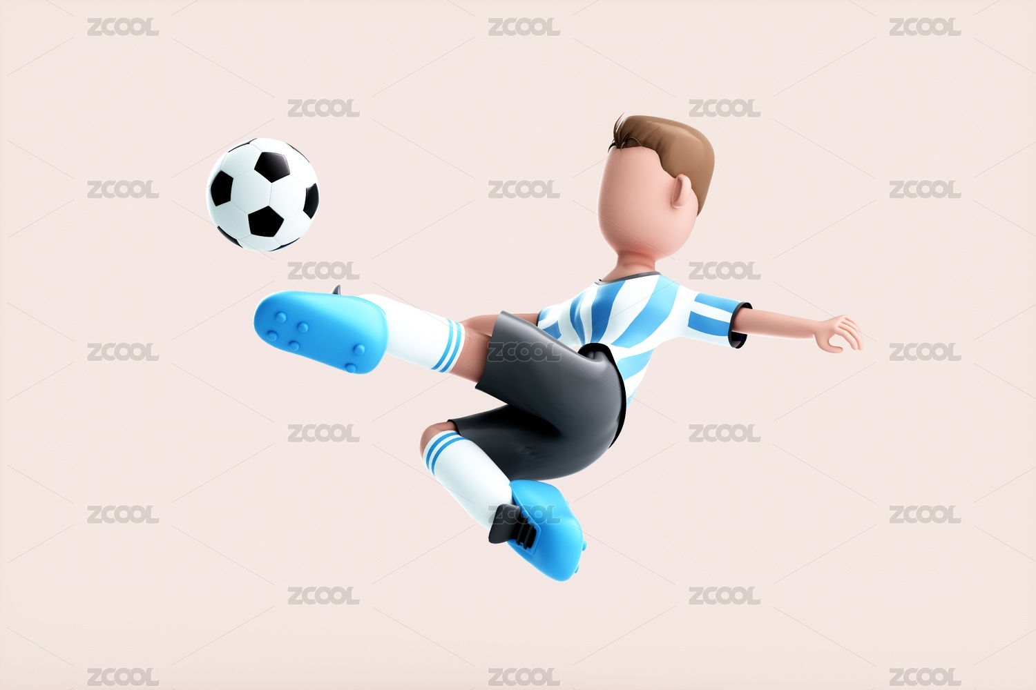 3D渲染的可爱踢足球的人物
