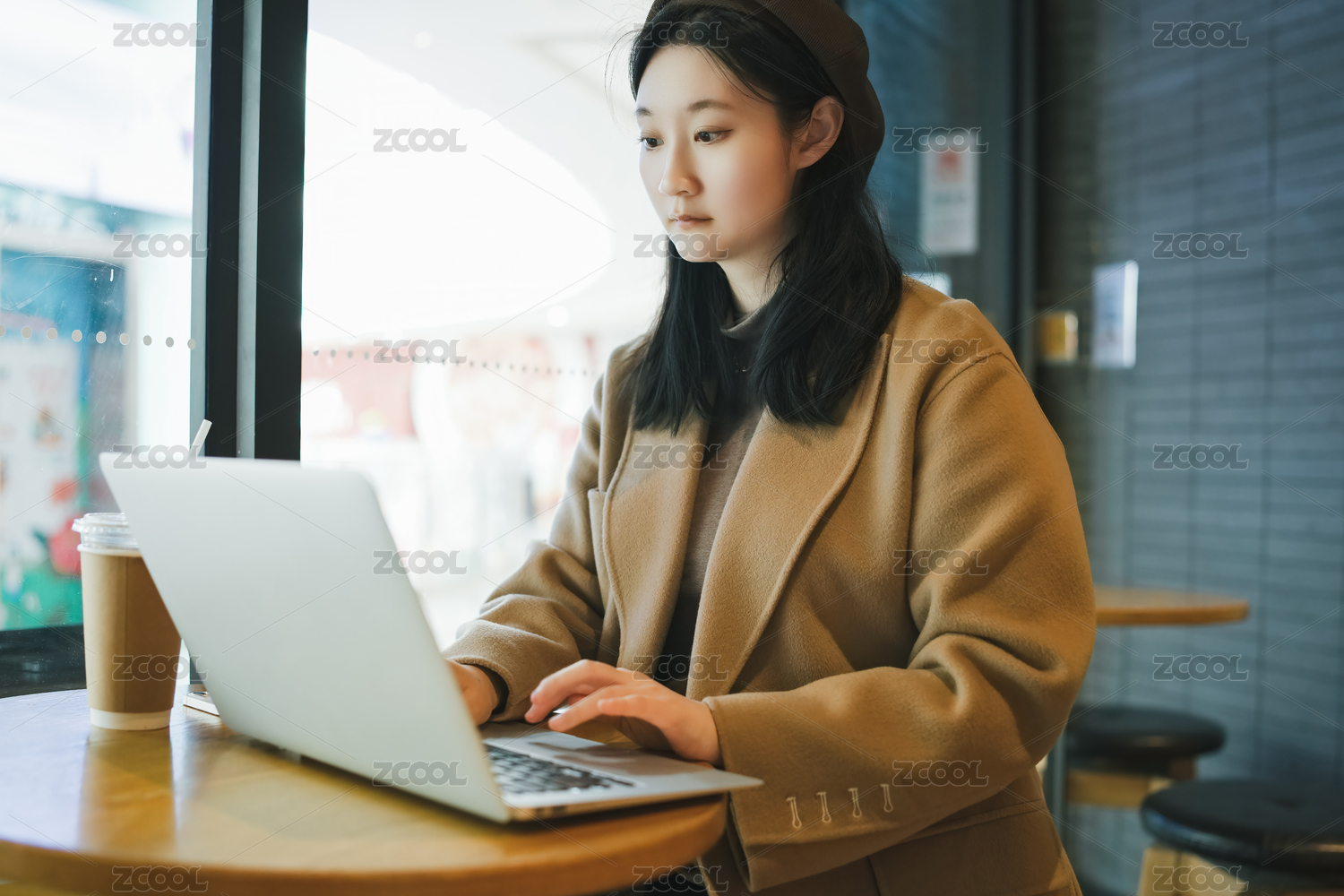 咖啡馆内使用笔记本电脑