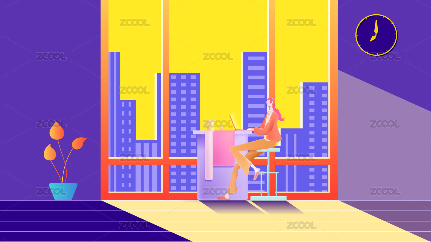 在办公桌边使用电脑办公聊天加班的白领矢量