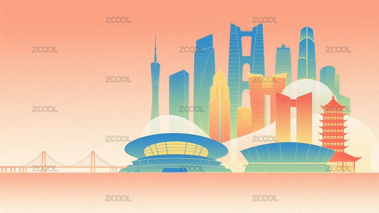 全运会体育比赛运动城市主题插画