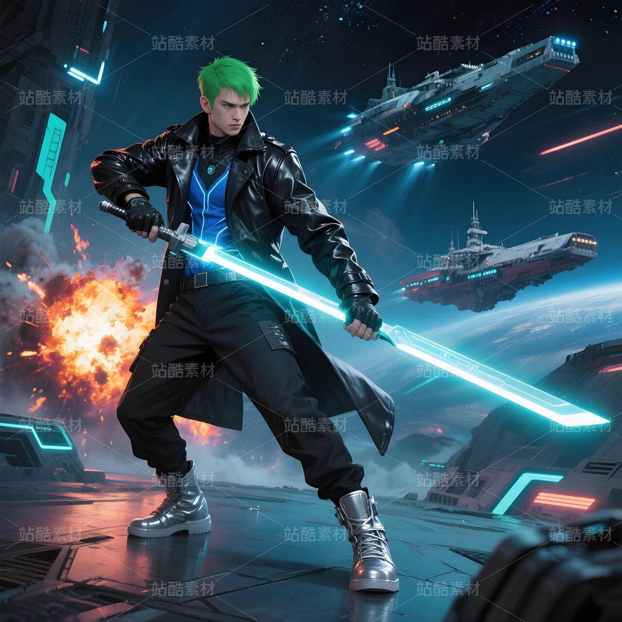赛博朋克物品拉杆旅行箱未来科幻科技虚构光