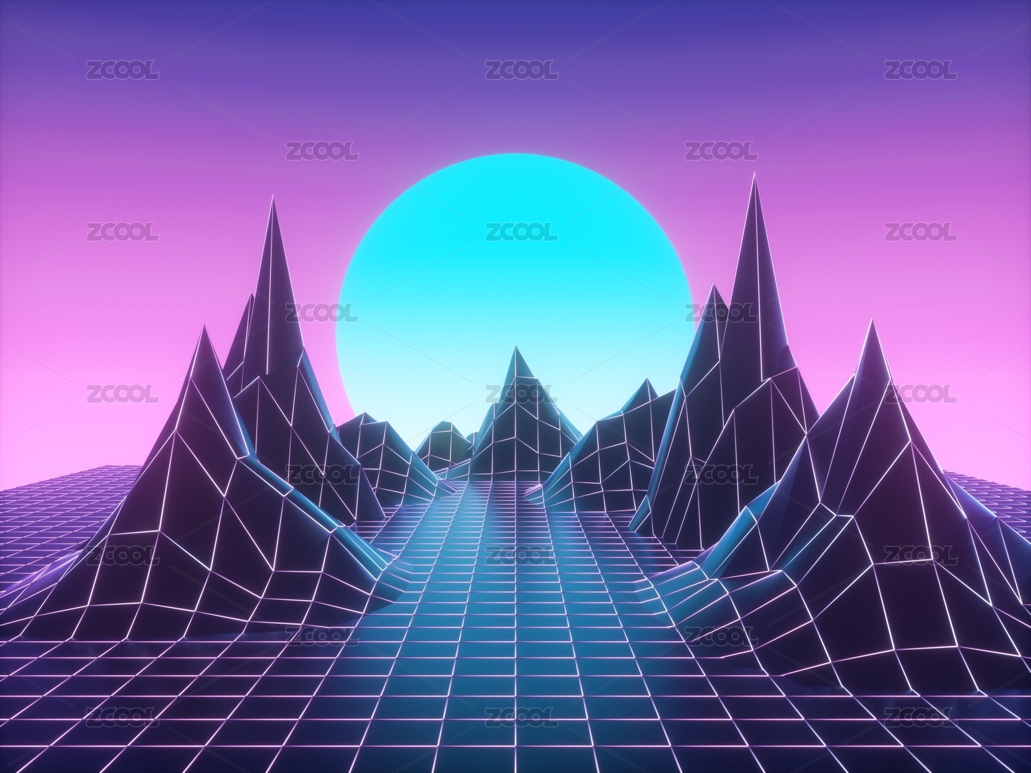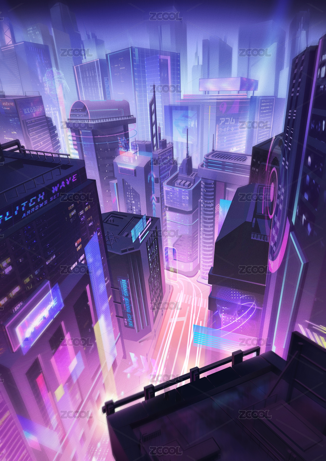 带有科技感的蒸汽波赛博朋克场景背景素材