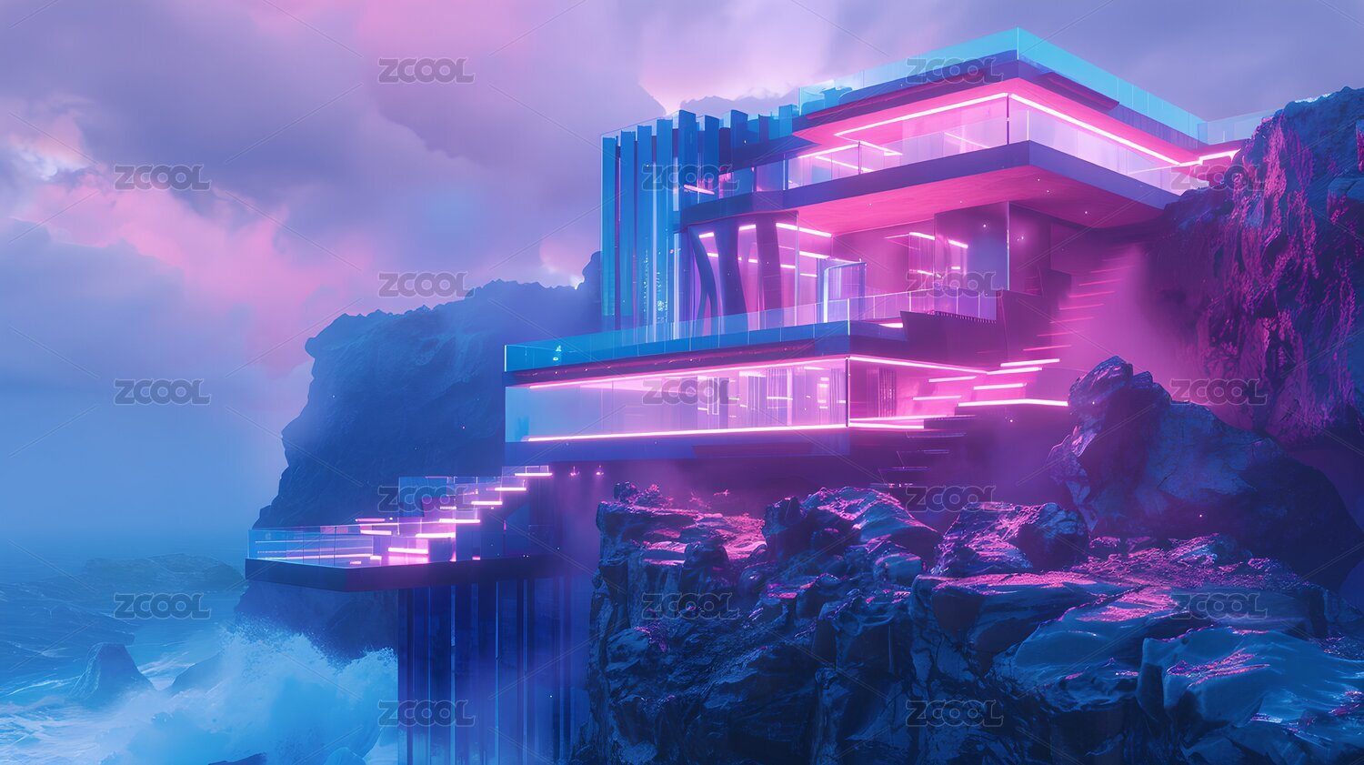 赛博朋克建筑室内空间展厅未来科技科幻虚构