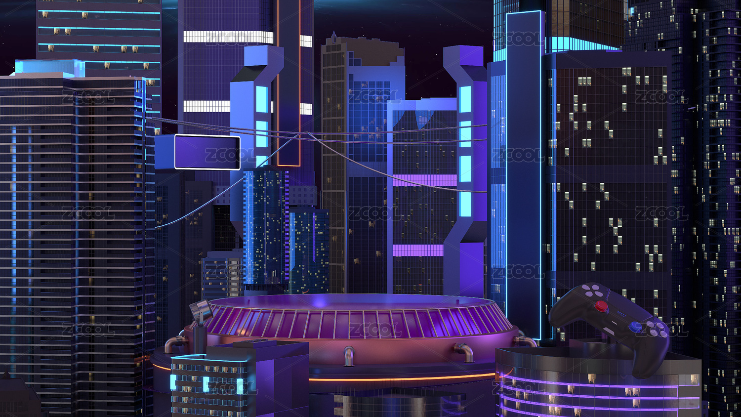 霓虹夜晚城市赛博朋克科技电竞风背景图