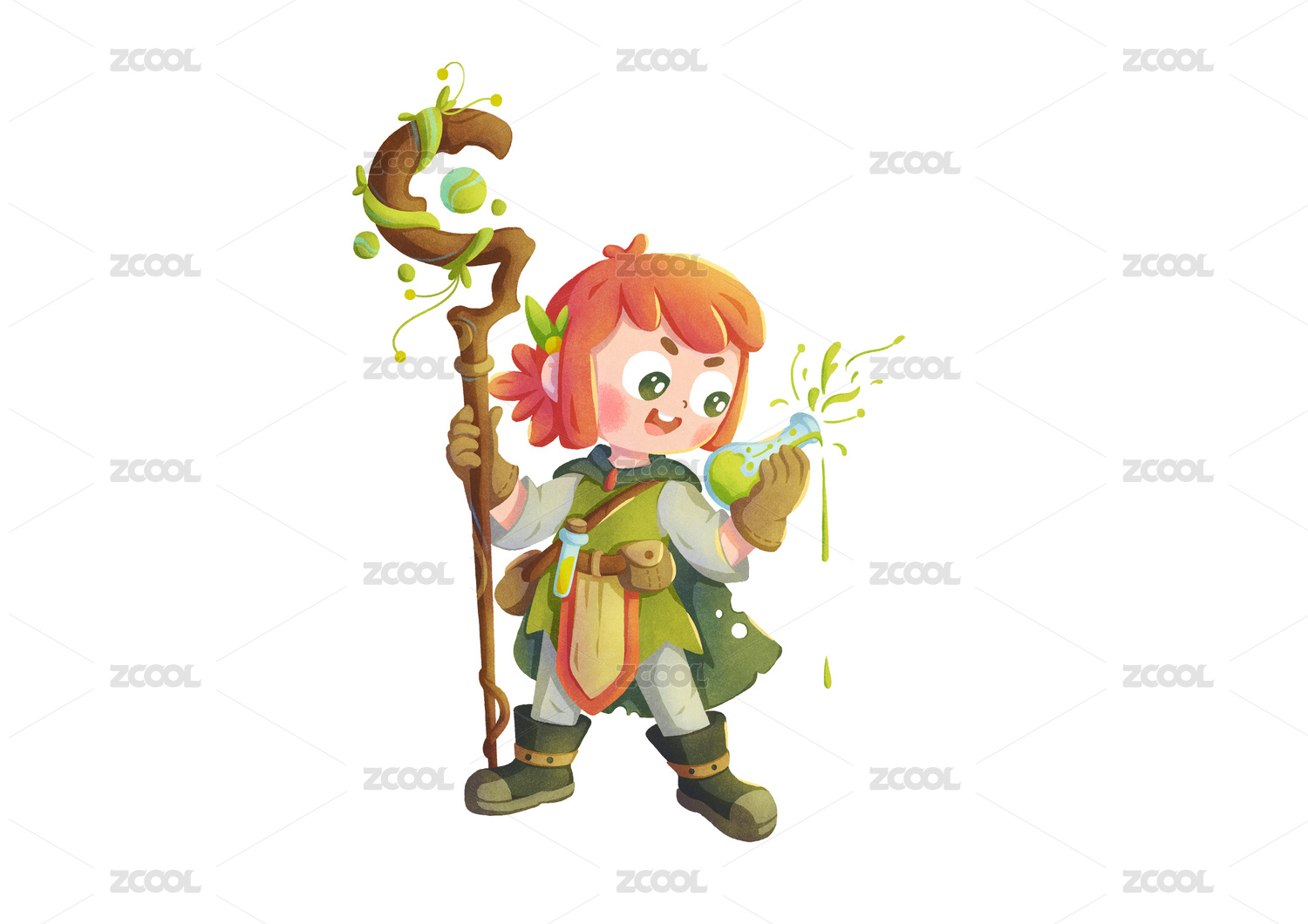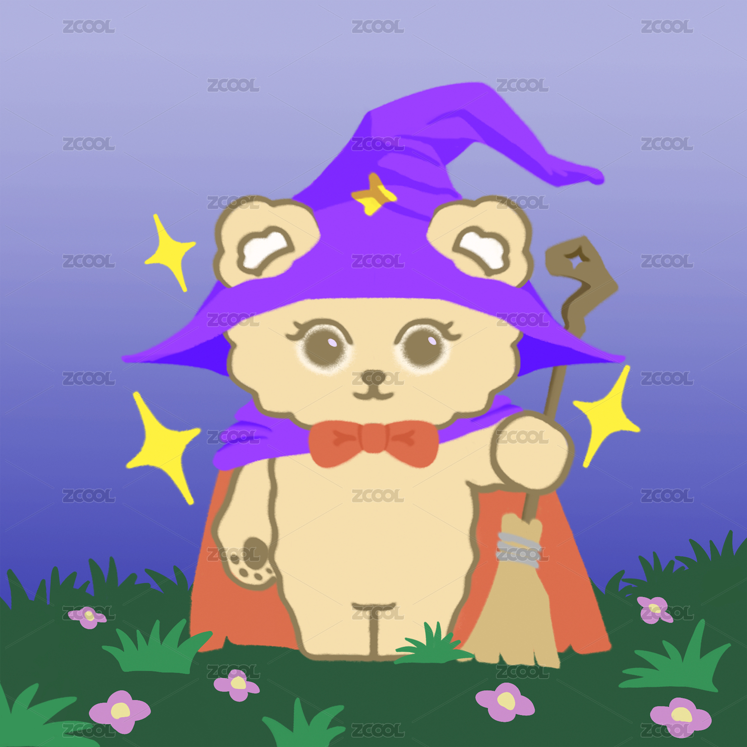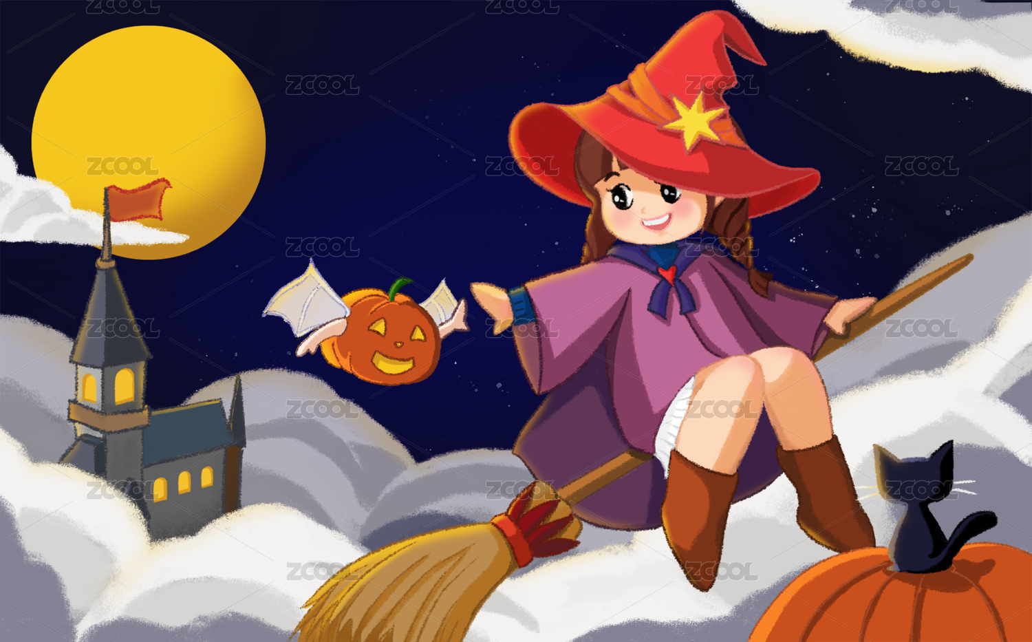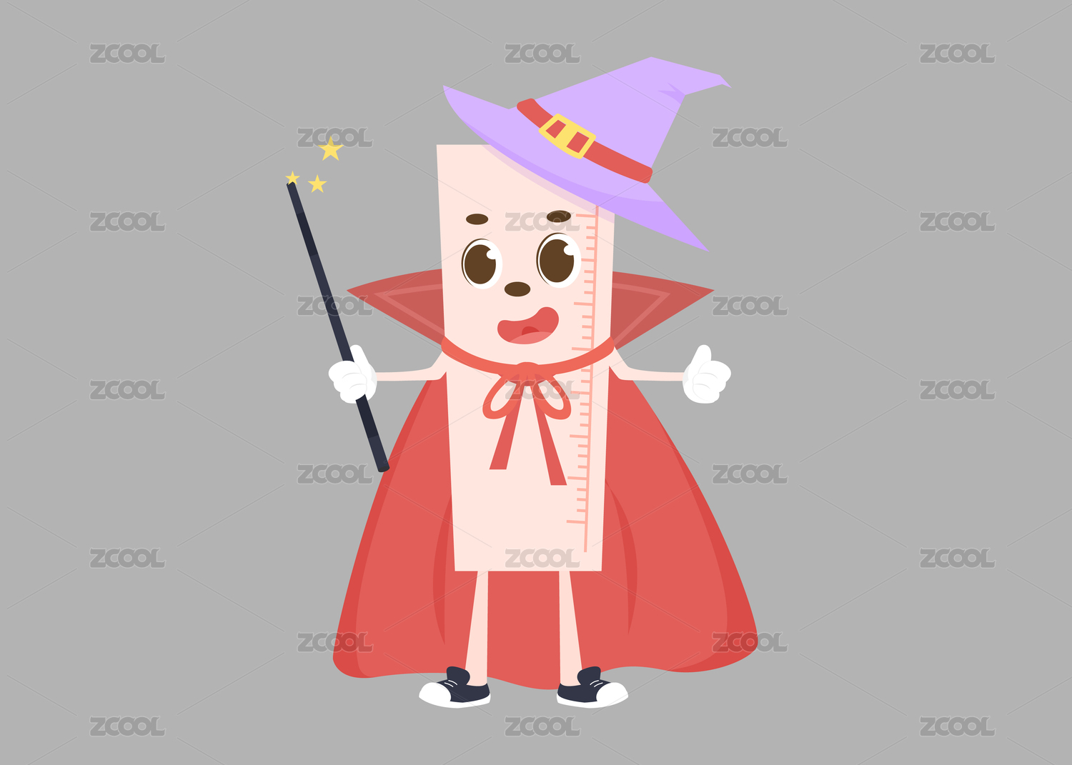 万圣节中的红色连衣裙女孩与魔法师男孩