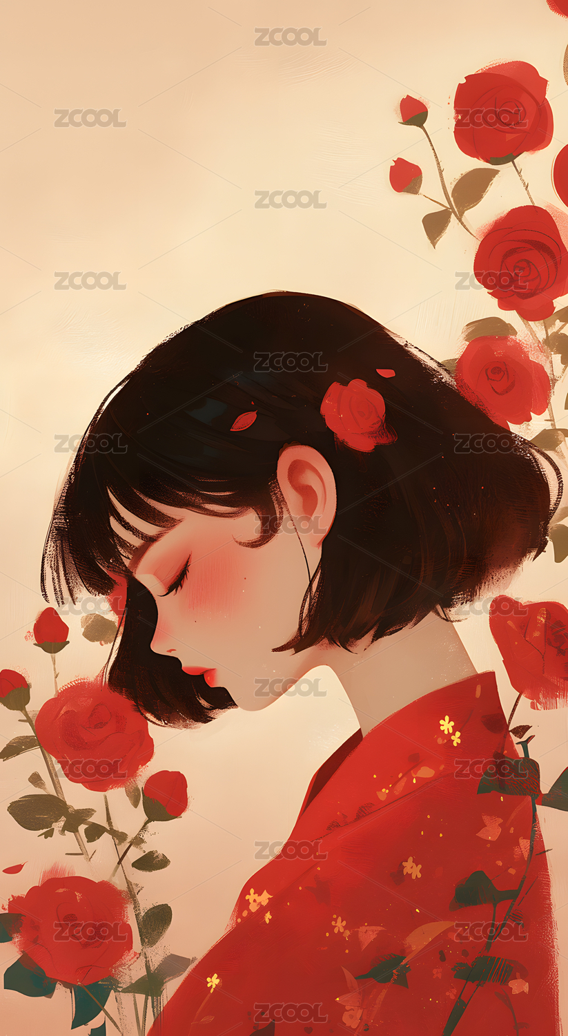 AI主题插画之戴花的女孩