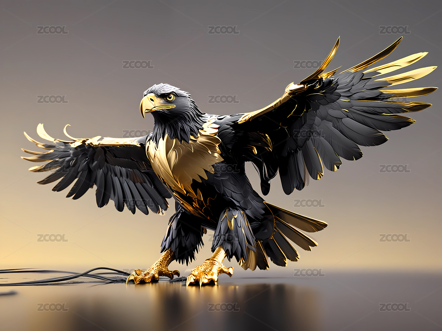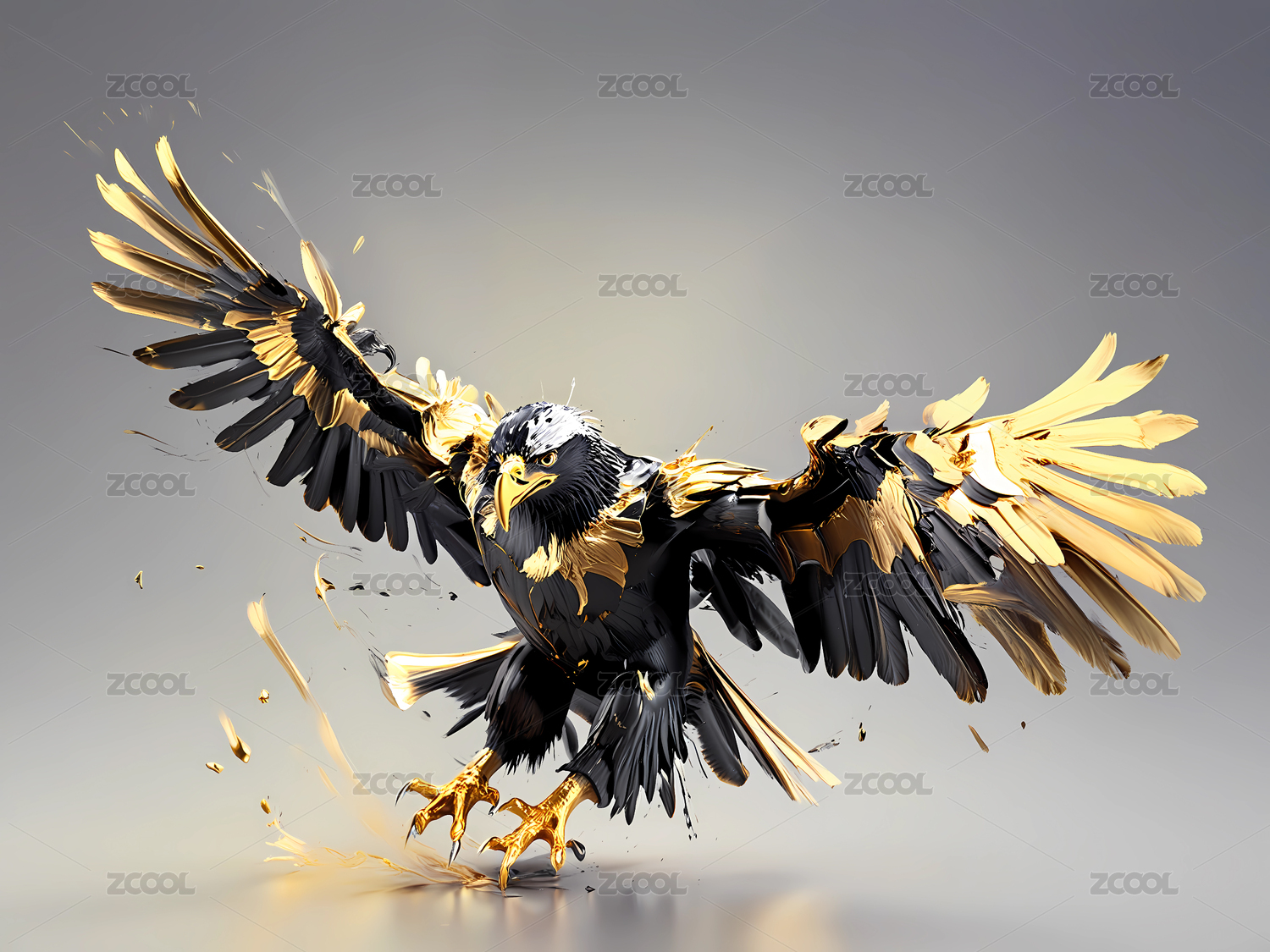 镏金风格的金色黑鹰插画艺术