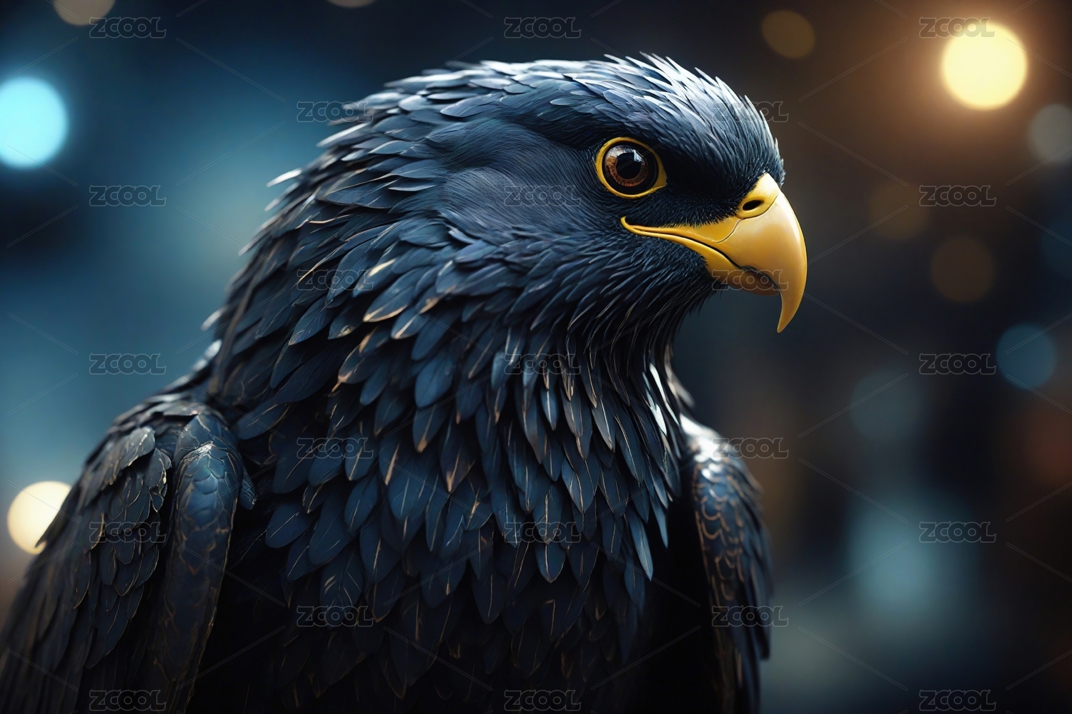 紫眸黑鹰于梦幻星云背景