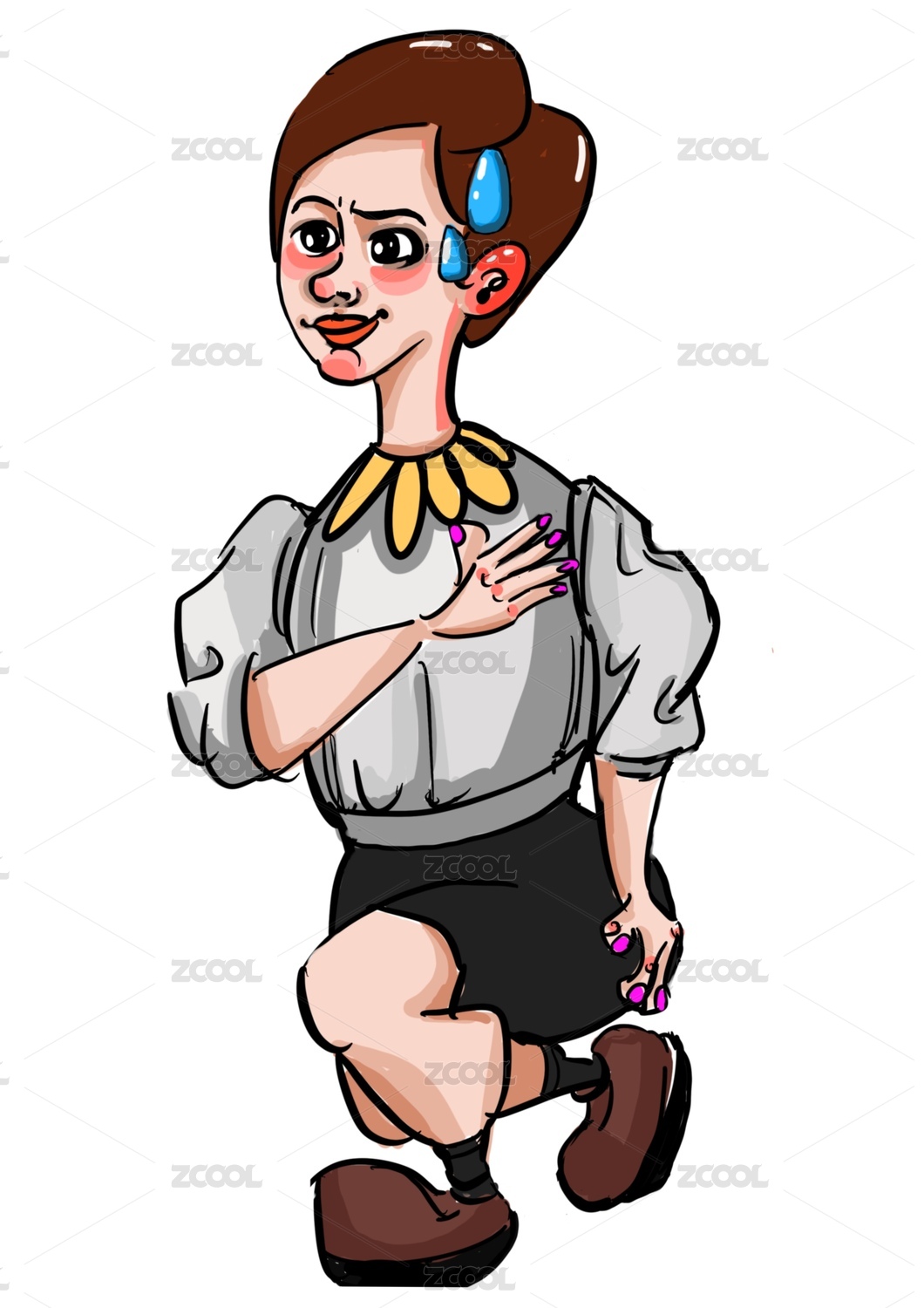 女孩单膝跪地
