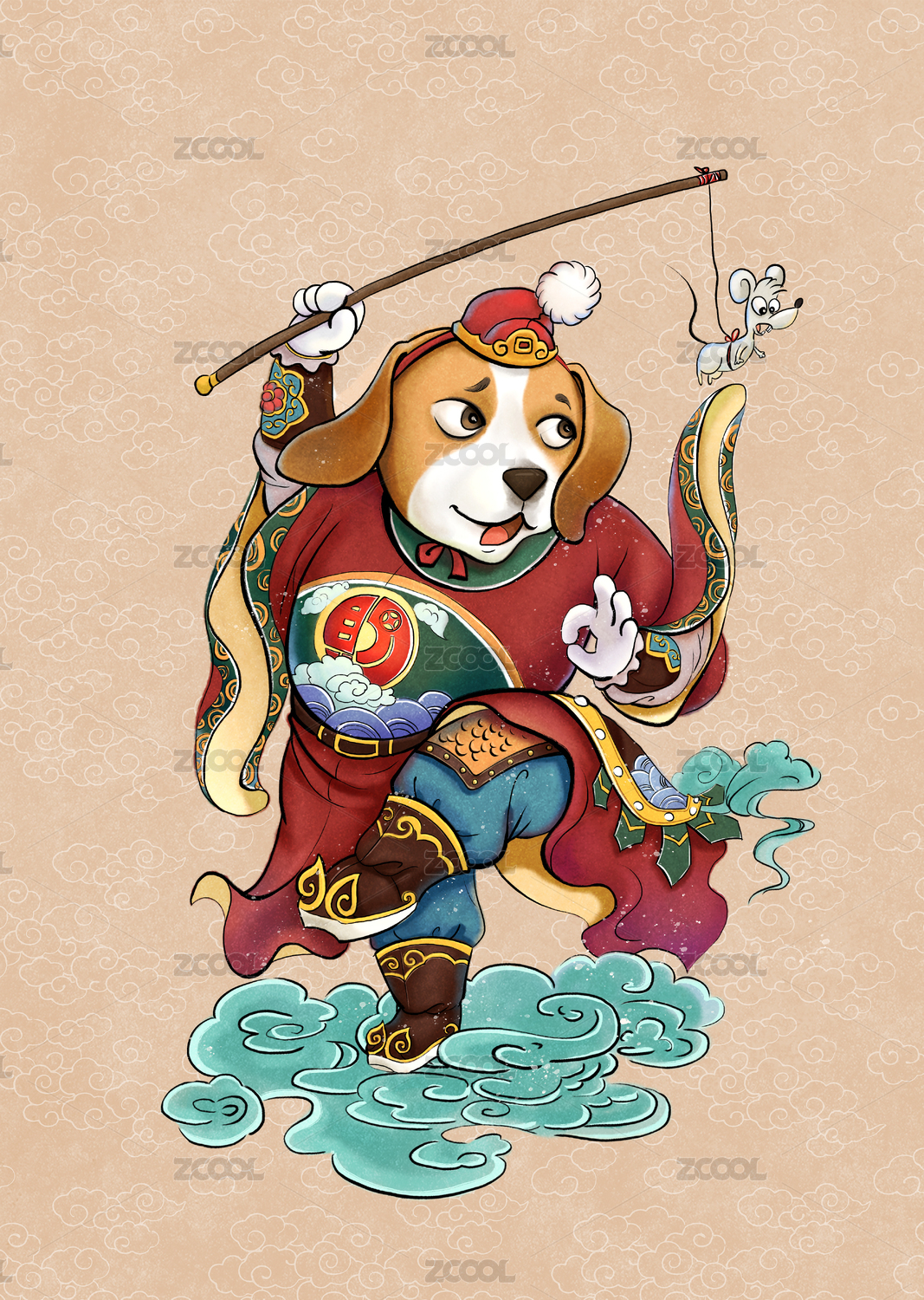 可爱搞笑狗狗招财纳福新年门神